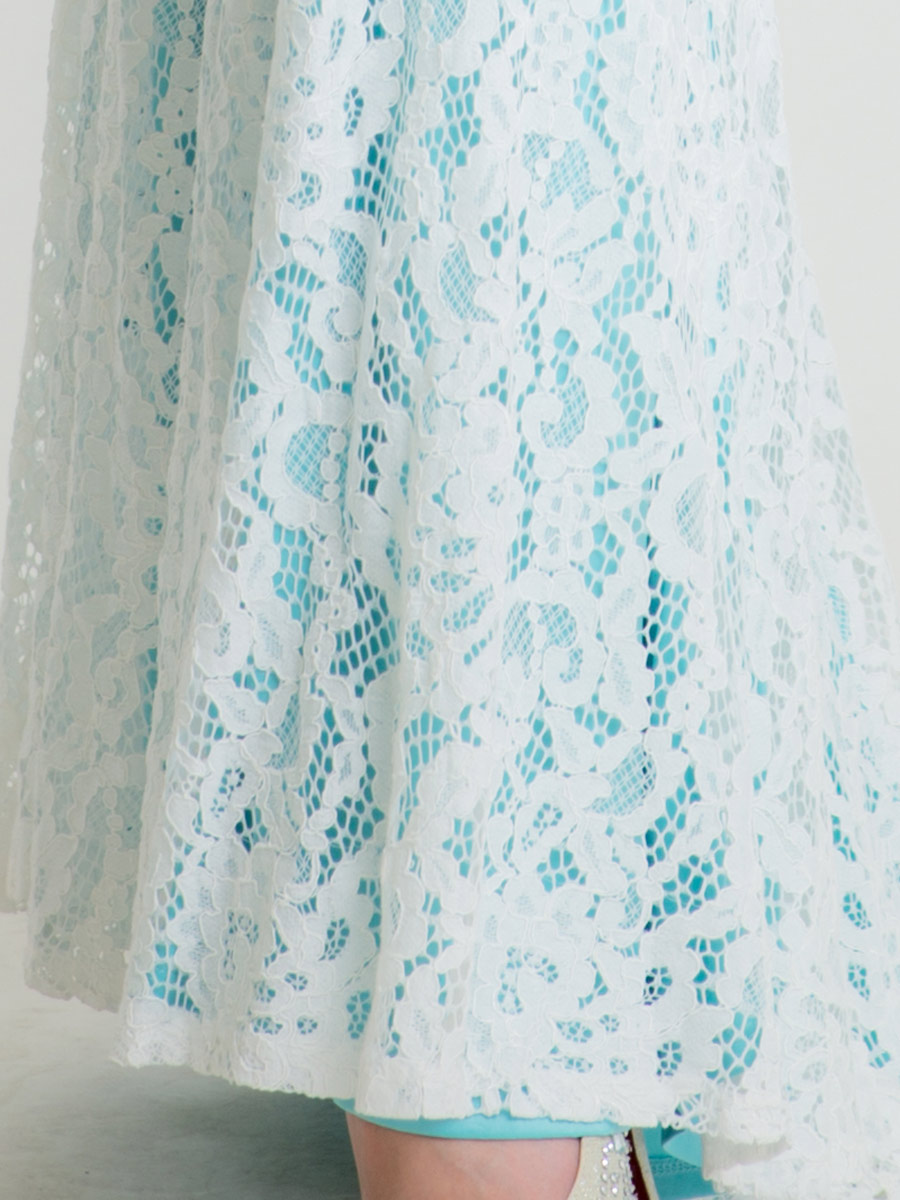 [ERUKEI][薗田杏奈着用]パステル・オーバーホワイトレース・ノースリーブ・Vネック・バックトレーン・ロングドレス[送料無料] [lk-29305]