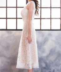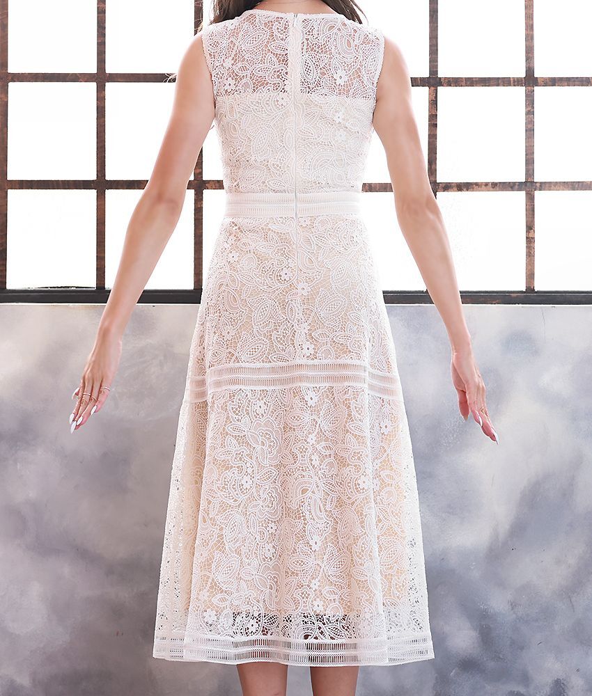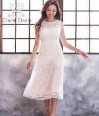 [ERUKEI]総レース・ホワイト・ベージュベース・ハイウエスト・ Aライン・ミディアムドレス・ワンピース[山崎みどり着用]《送料&代引き手数料無料》 [lk-c23060]