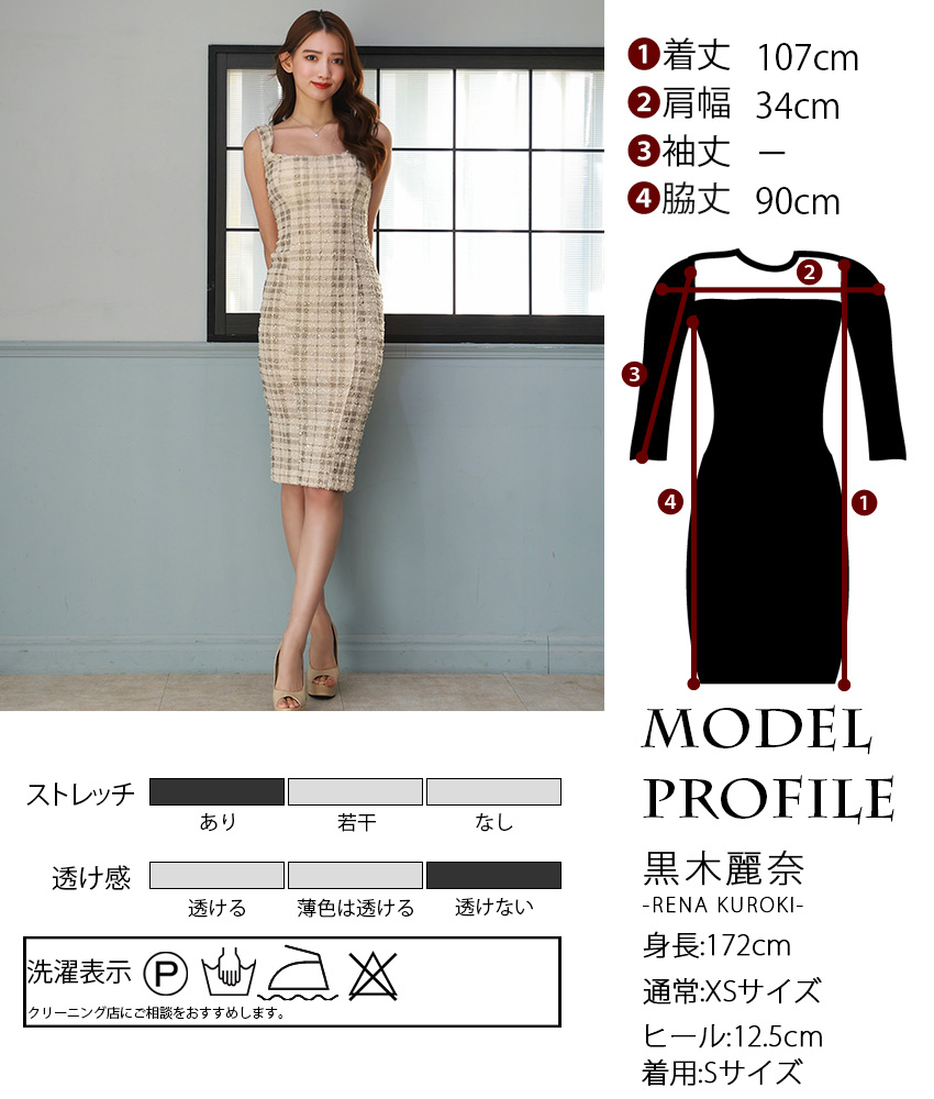 [韓国製][rinfarre]ノースリーブ・ツイード・金糸入り・ストレッチ・タイト・ミディアムドレス・ワンピース[黒木麗奈・山崎みどり着用][送料無料]mybkwh [cd-k05949t]
