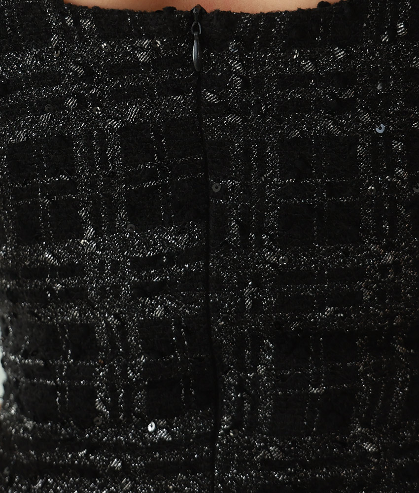 [韓国製][rinfarre]ノースリーブ・ツイード・金糸入り・ストレッチ・タイト・ミディアムドレス・ワンピース[黒木麗奈・山崎みどり着用][送料無料]mybkwh