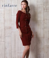 [韓国製][rinfarre][SALE品のため返品不可&再入荷なしの現品限り]七分袖・フロントボタン付き・ワイン・ブラック・ストレッチ・タイト・ショート丈・ミニドレス・ワンピース[山崎みどり・れお着用][送料無料]mybk [cd-k05956gi]