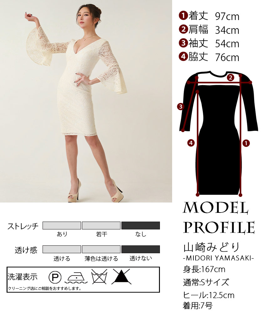[ERUKEI]総レース・スパンコール・タイト・7分袖・Vネック・フリルスリーブ・ミディアムドレス・ワンピース[山崎みどり着用][送料無料] mywh [lk-e24140]