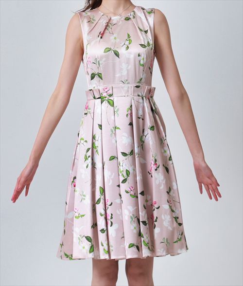 [ERUKEI GINZA COUTURE]花柄・サテン・ノースリーブ・タック・プリーツ・Aライン・ミニドレス・ワンピース[黒木麗奈着用][送料無料] [lk-c24072]