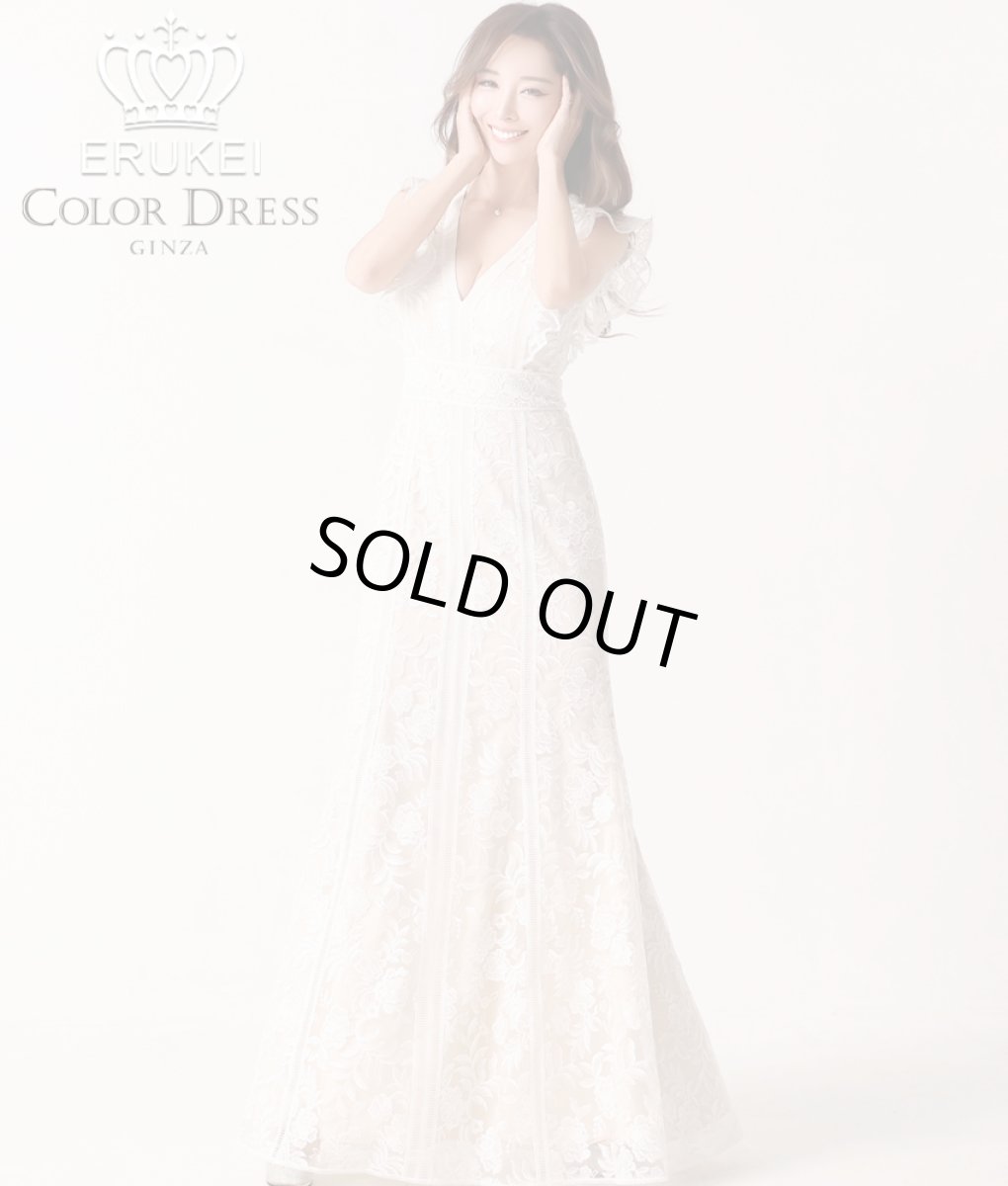 [ERUKEI]Vネック・フリルスリーブ・総レース・ハイウエスト・タイト・マーメイド・ロングドレス[山崎みどり着用]《送料&代引き手数料無料》 mywh [lk-s37088]