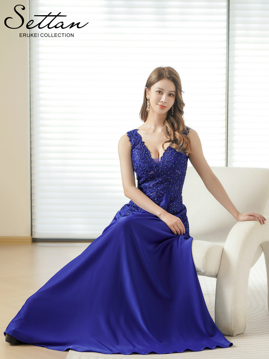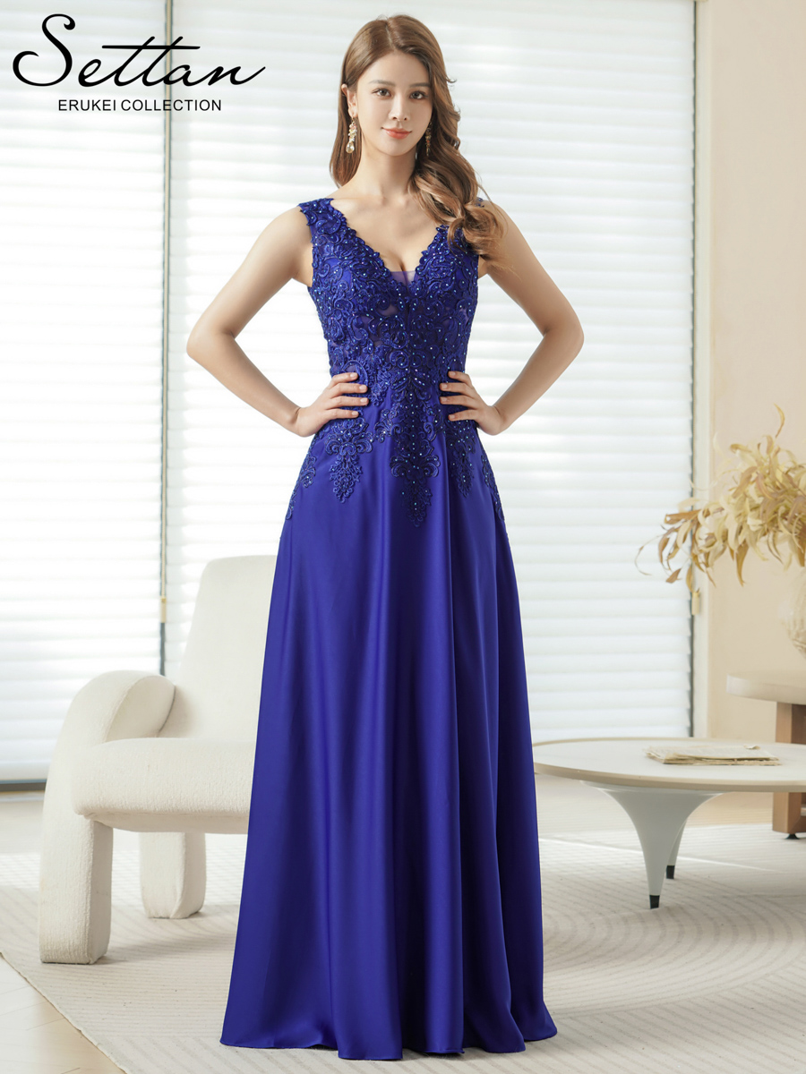 [ERUKEI/SETTAN]ホワイト・ネイビー・ベージュ・ワインレッド・ロイヤルブルー・Aライン・エレガント・胸元レース・スパンコール・ロングドレス[送料無料] [lk-s35107]