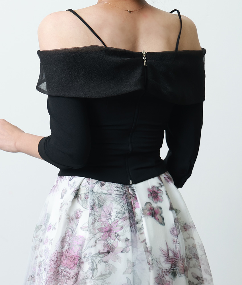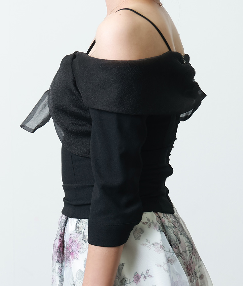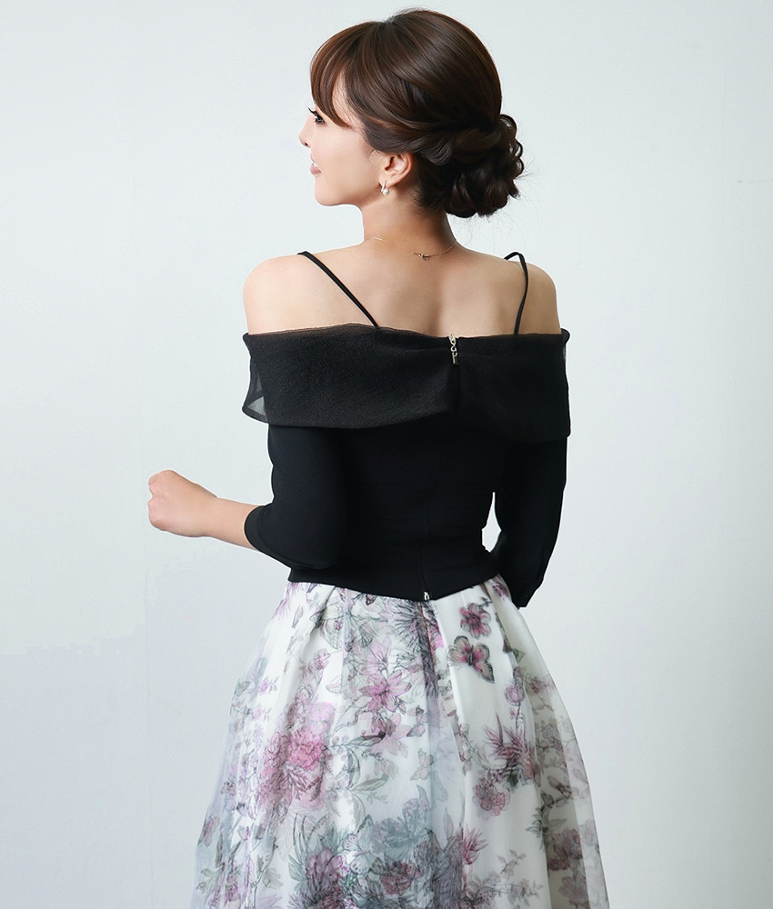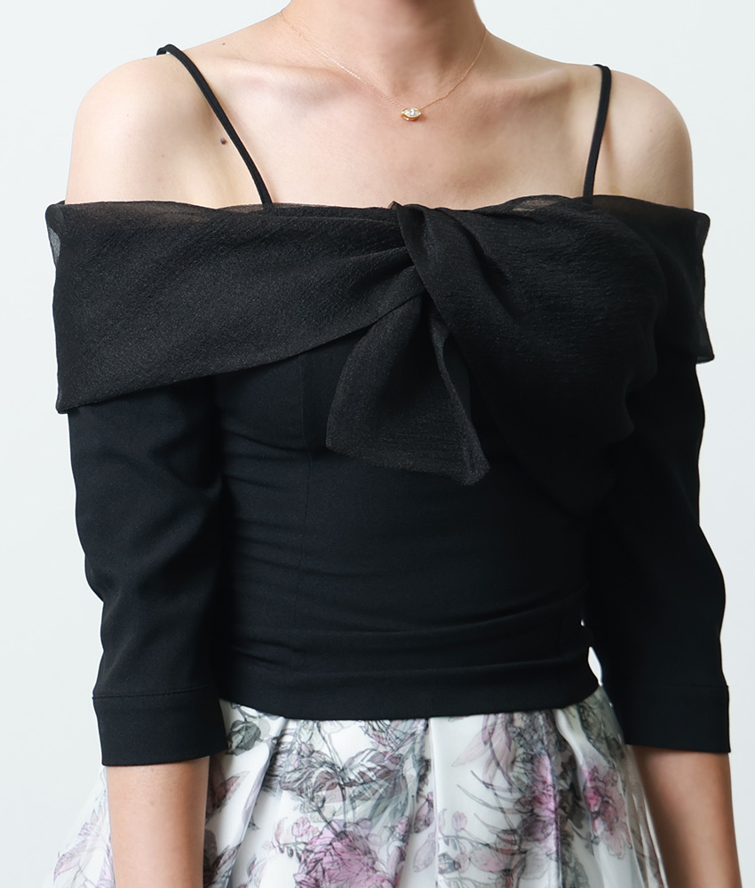 [韓国製][rinfarre]オフショルダー・肩紐・ホワイト・ブラック・ワンポイント・リボンモチーフ・上品・ブラウス・シンプル[薗田杏奈着用][送料無料] [cd-k06197et]