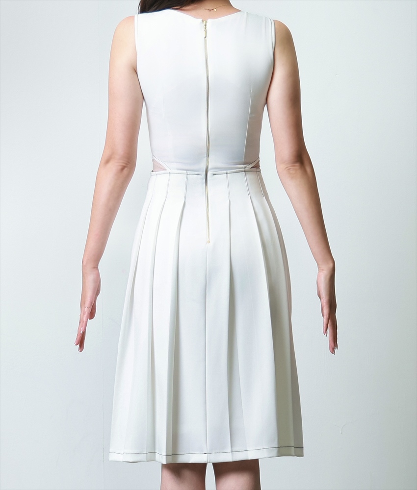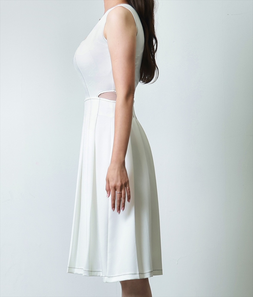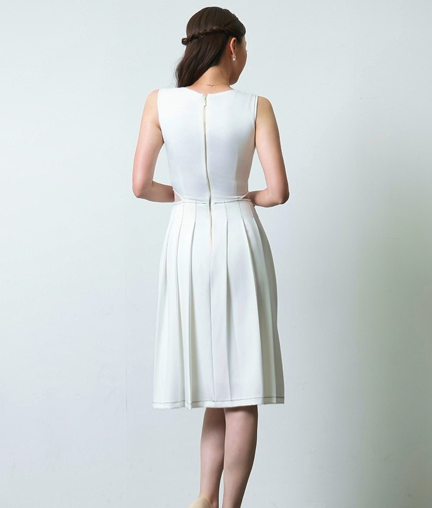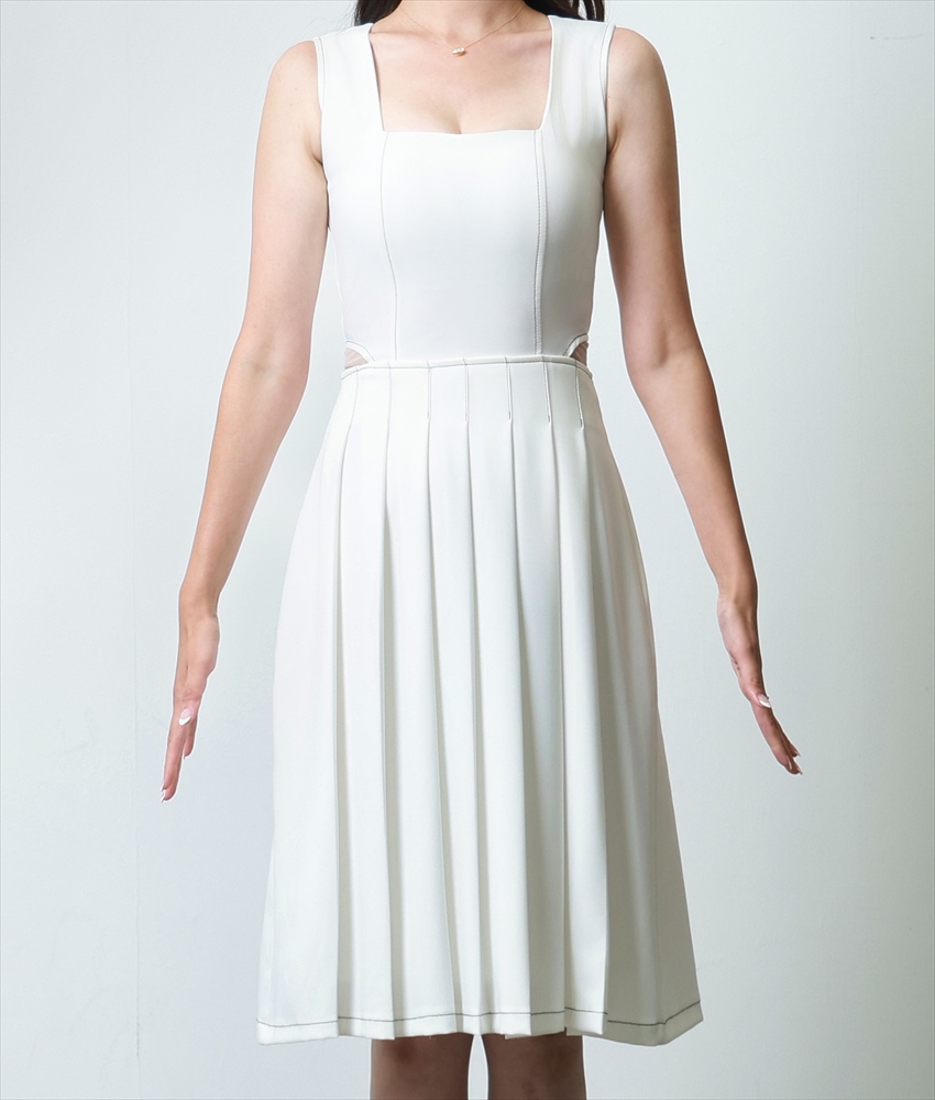 [韓国製][rinfarre]ノースリーブ・スクエアネック・ステッチ・プリーツ・Aライン・ミディアムドレス・ワンピース[薗田杏奈着用][送料無料] [cd-k06189sn]