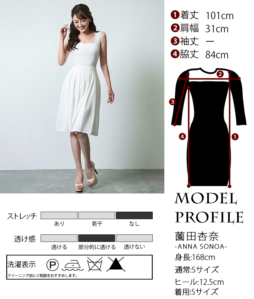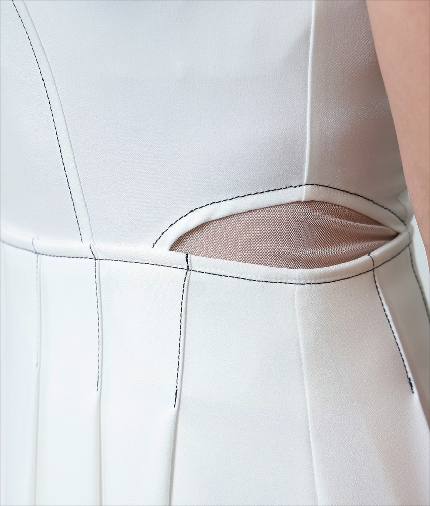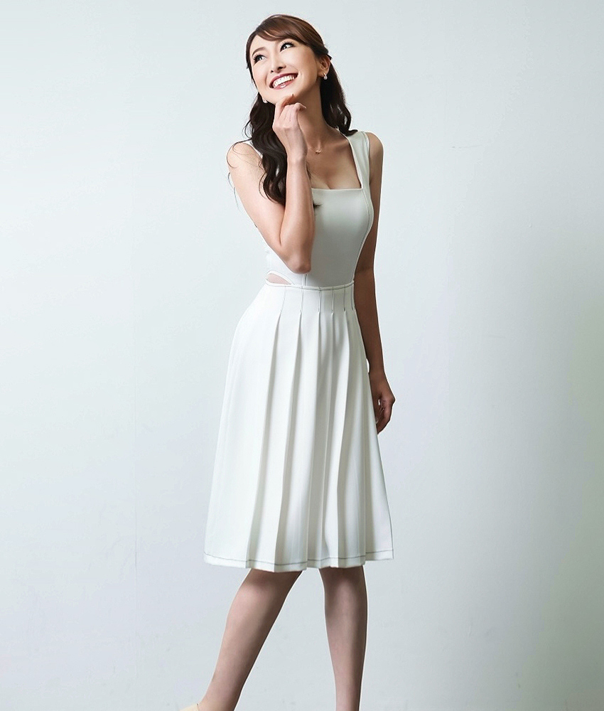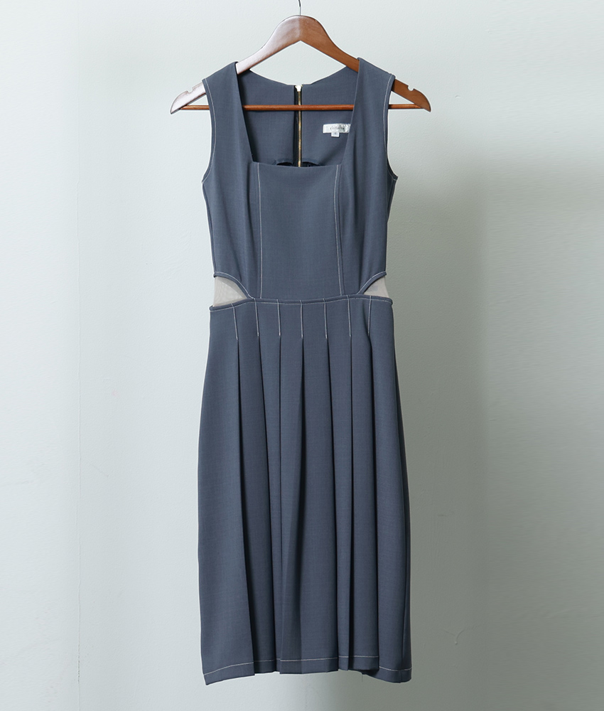 [韓国製][rinfarre]ノースリーブ・スクエアネック・ステッチ・プリーツ・Aライン・ミディアムドレス・ワンピース[薗田杏奈着用][送料無料] [cd-k06189sn]
