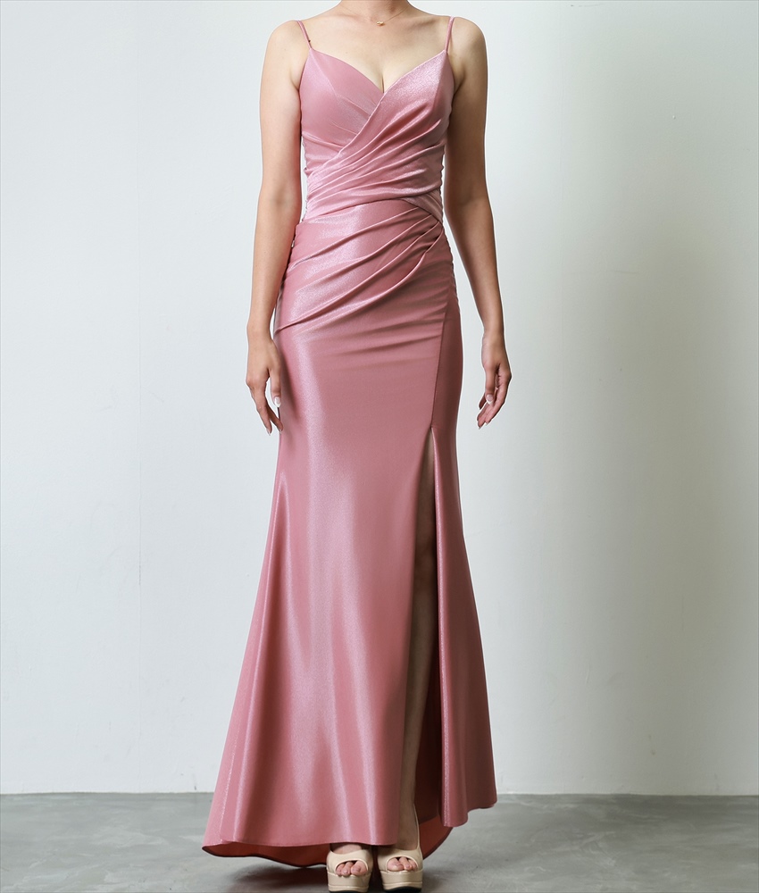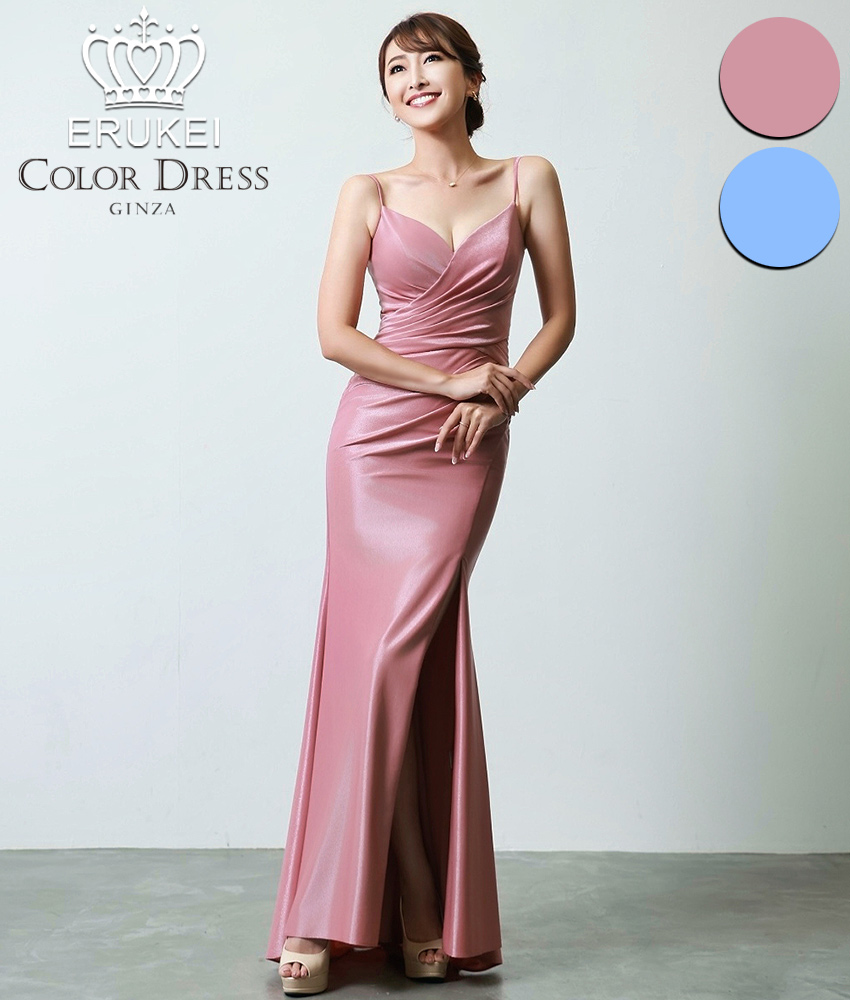 [ERUKEI/SETTAN]ピンク・グリーン・マーメイド・リボン・スリット・ビジュー・シンプル・タイト・Vネック・ロングドレス[送料無料] [lk-s36106]