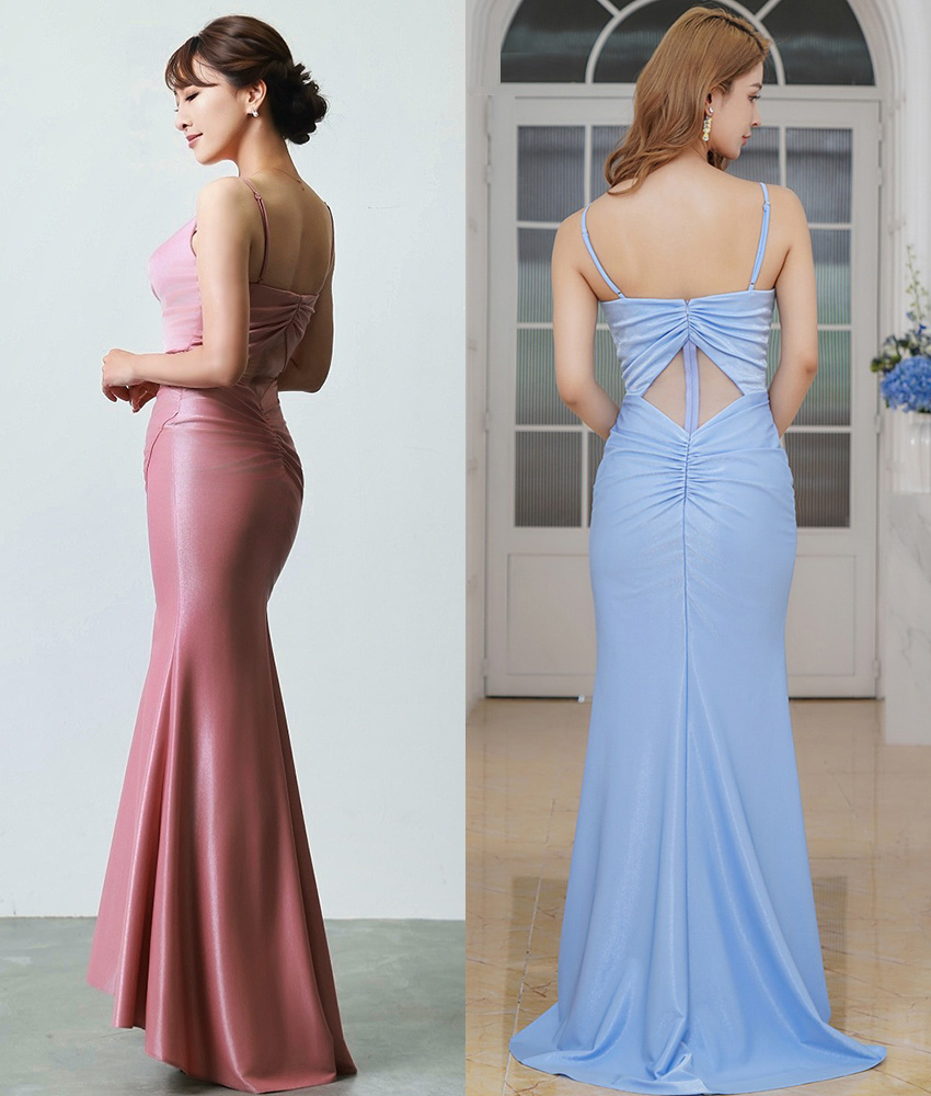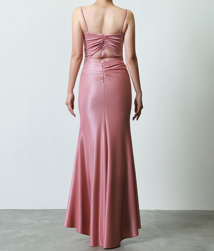 [ERUKEI]キャミソール・カットアウト・ギャザー・スリット・タイト・マーメイド・ロングドレス[薗田杏奈着用][送料無料] [lk-s37208]