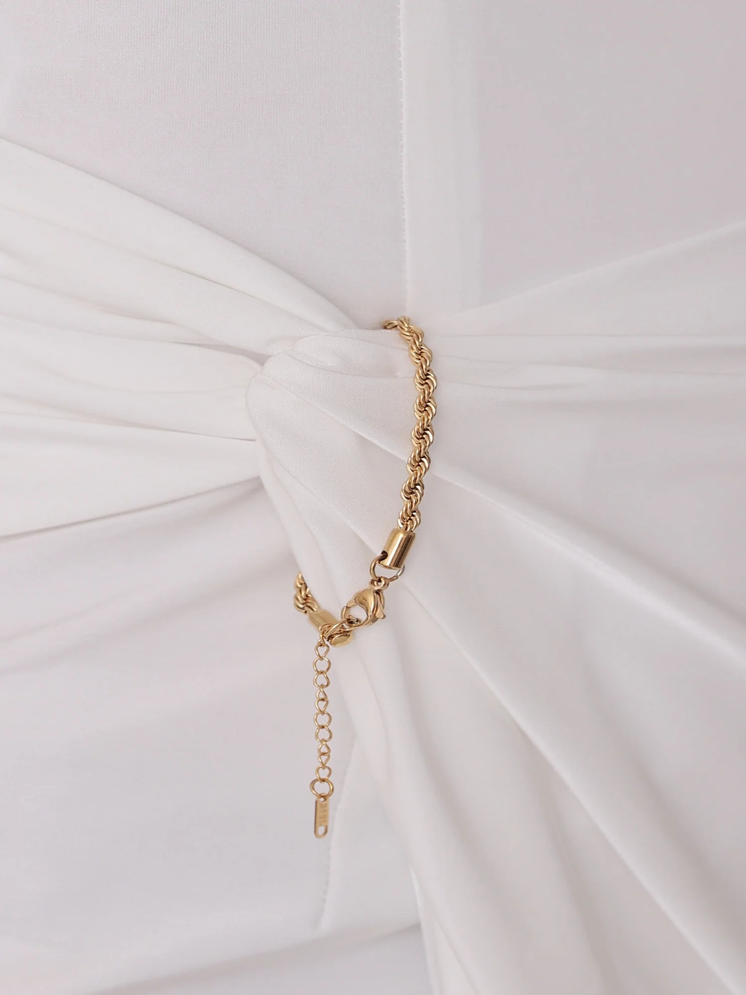 [韓国製][韓国製][rinfarre]ホワイト・長袖・オフショルダー・スリット・シンプル・清楚・タイト・ミディアムドレス・ワンピース[黒木麗奈着用][送料無料] [cd-k06107y]