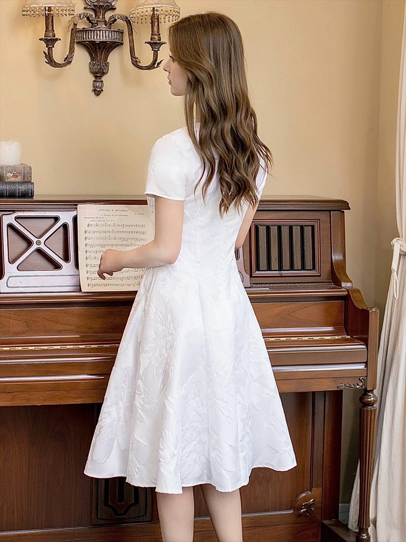 [ERUKEI/GINZA COUTURE]ピンク・レッド・ホワイト・半袖・シンプル・Aライン・花・ミディアムドレス・ワンピース[送料無料] [lk-c2741]