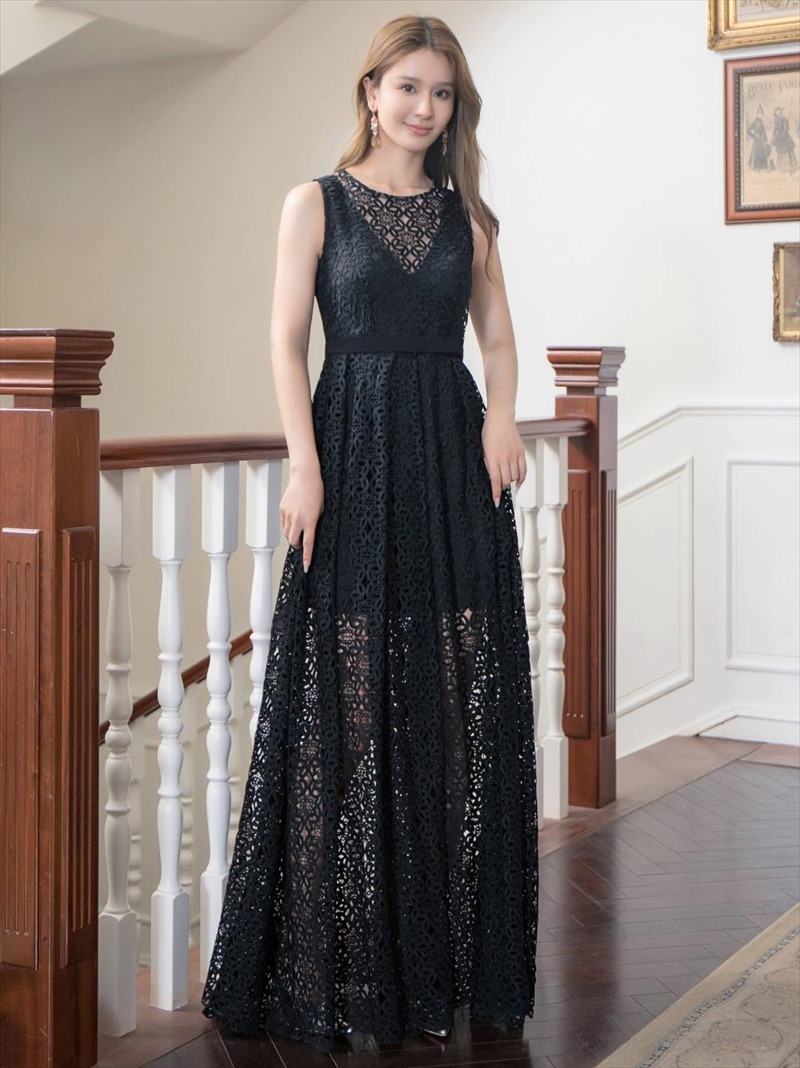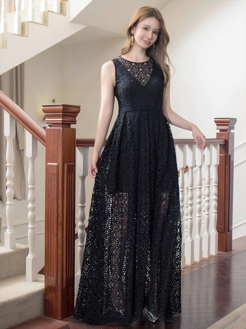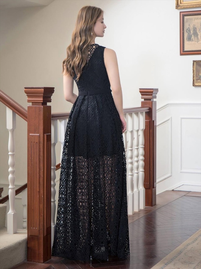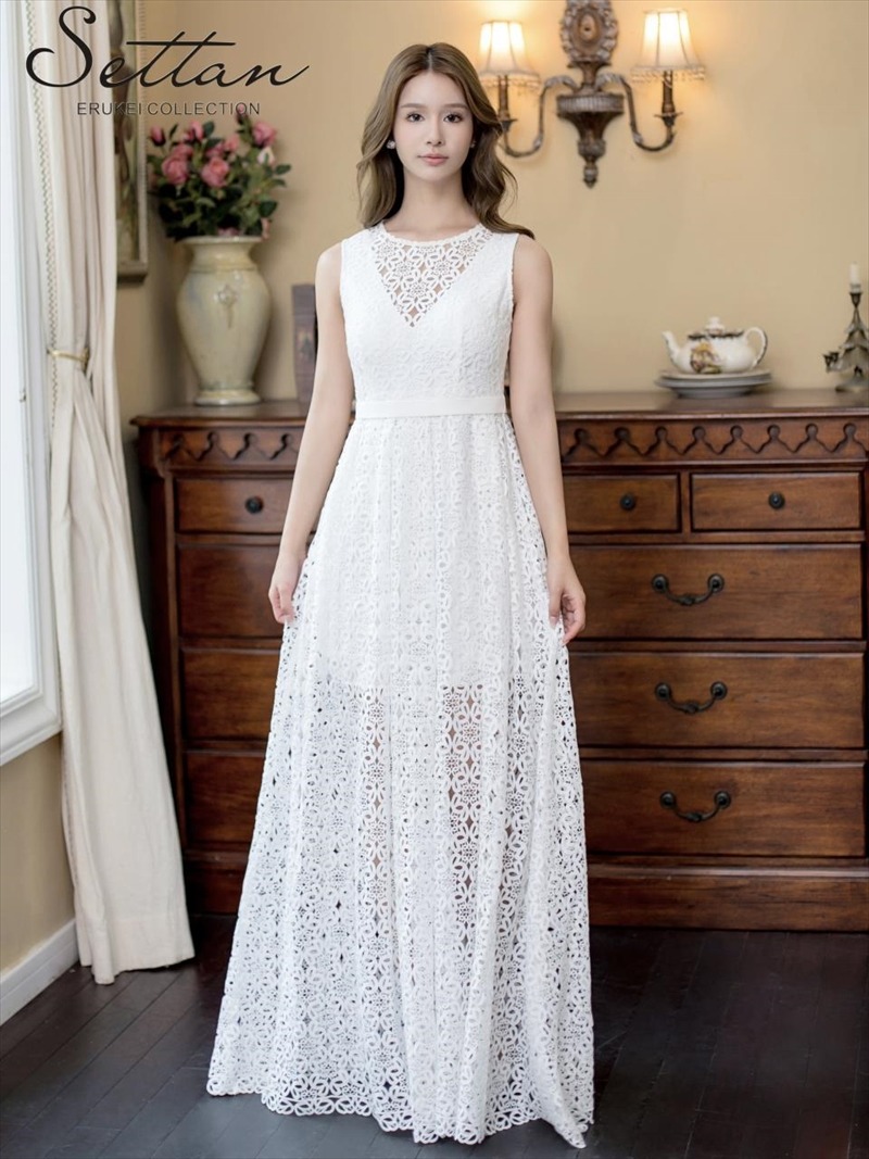 [ERUKEI/SETTAN]ホワイト・ブラック・総レース・ノースリーブ・Aライン・ロングドレス[送料無料] [lk-s22144]