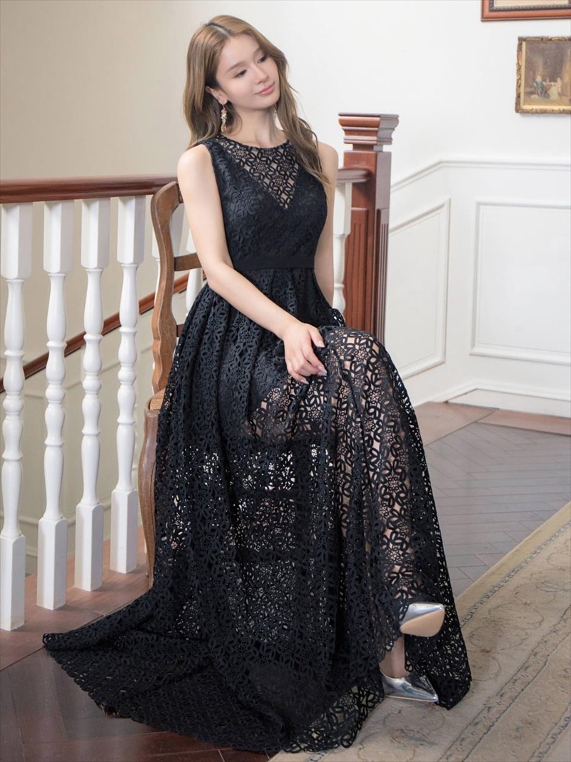 スタッフ着用の感想 普段サイズでOK おススメポイント ・・ERUKEI LK エルケイドレス・・ ノースリーブのロングドレスです。 フラワーの総レースが女の子らしい…