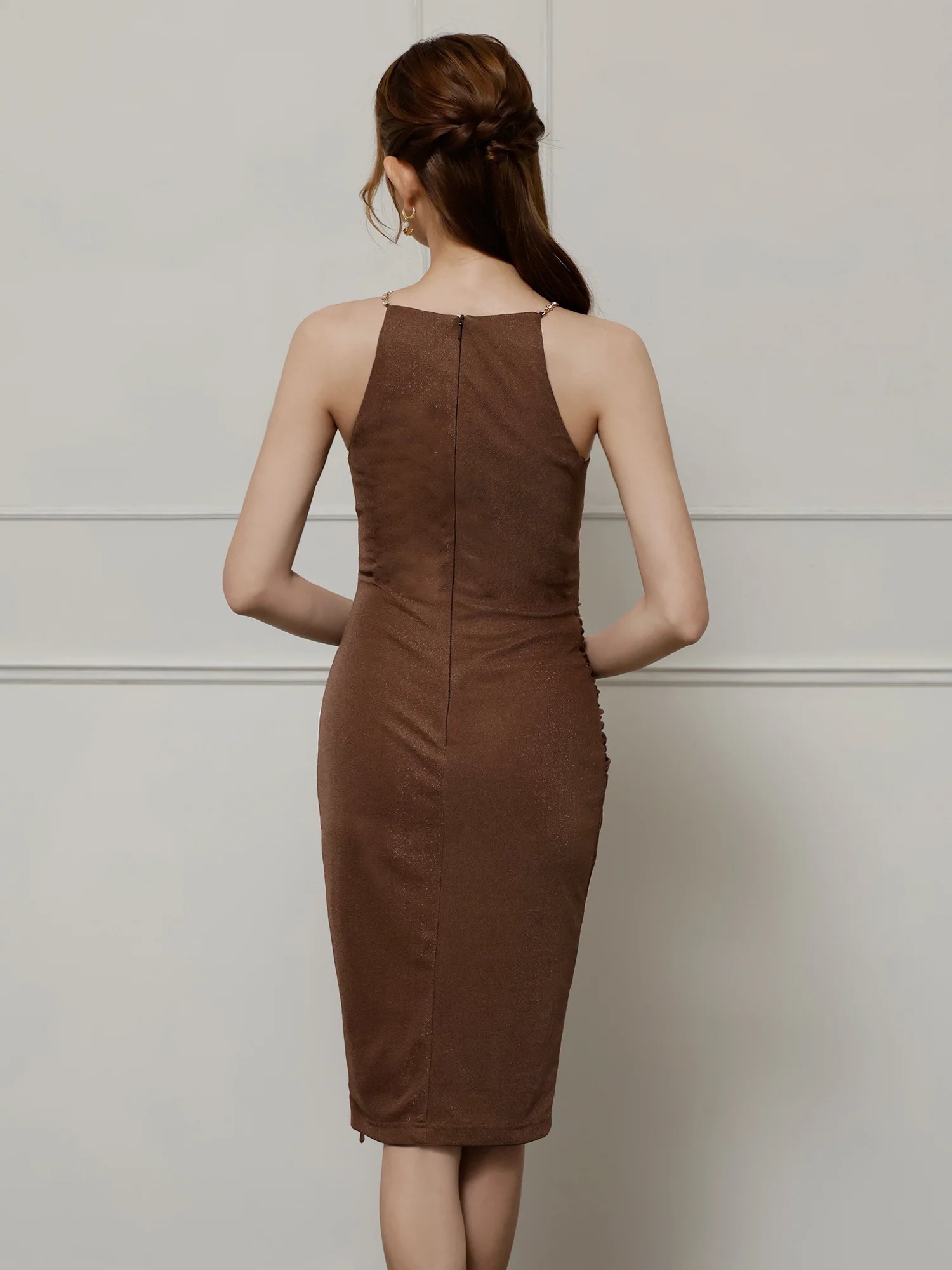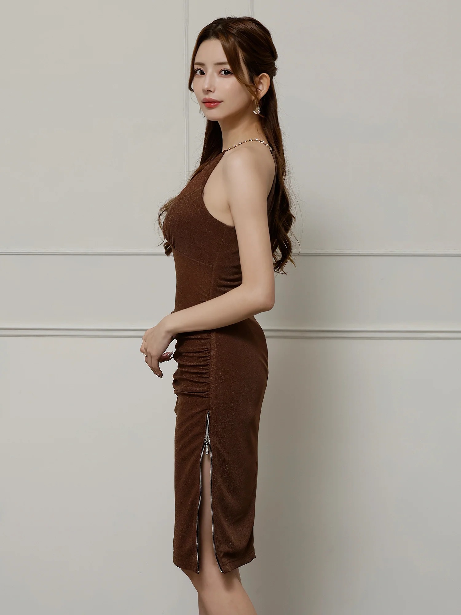 [Veautt]ホルターネック・フロントシアーデザイン・ビジューチェーン・タイトミディアムドレス《送料&代引き手数料無料》 [ar-vt082526]
