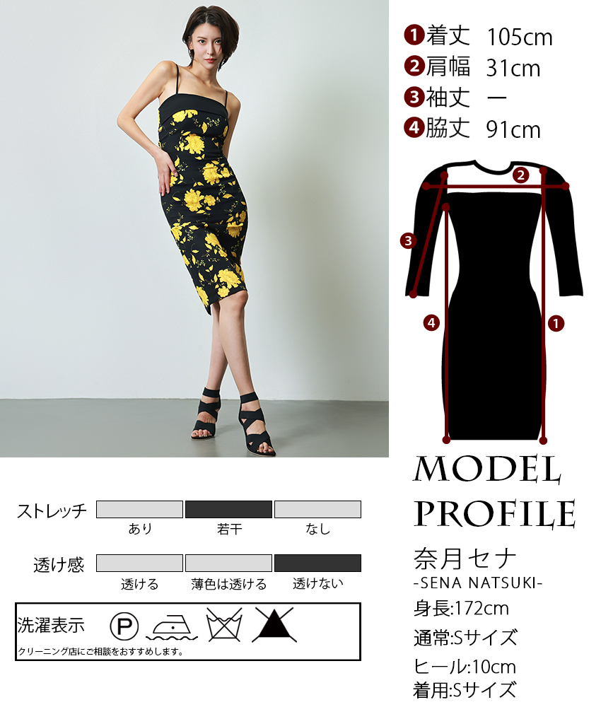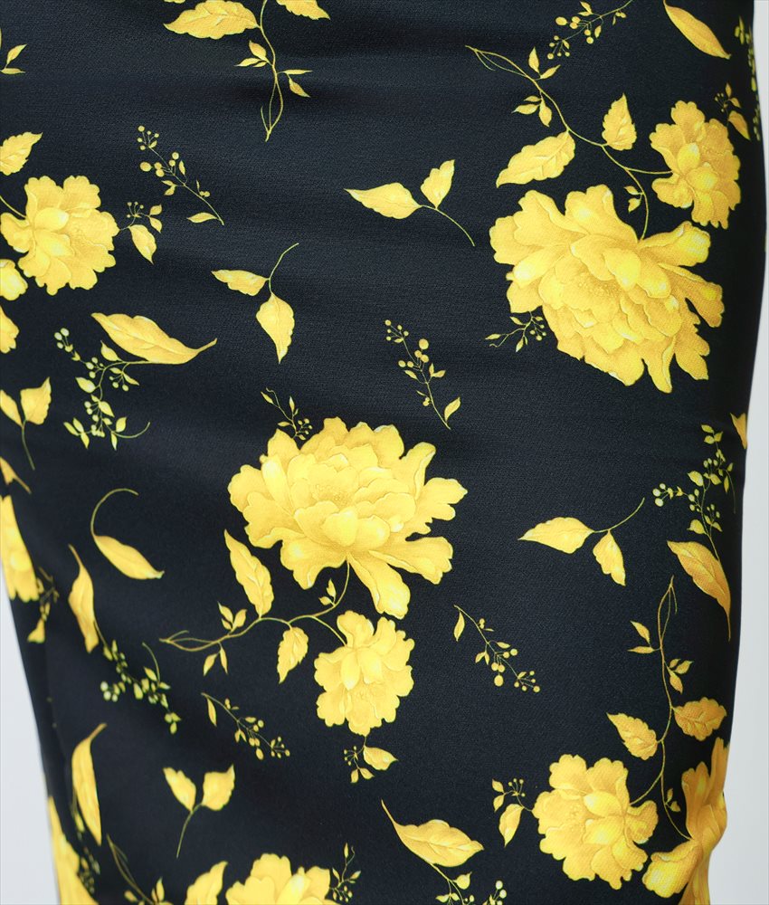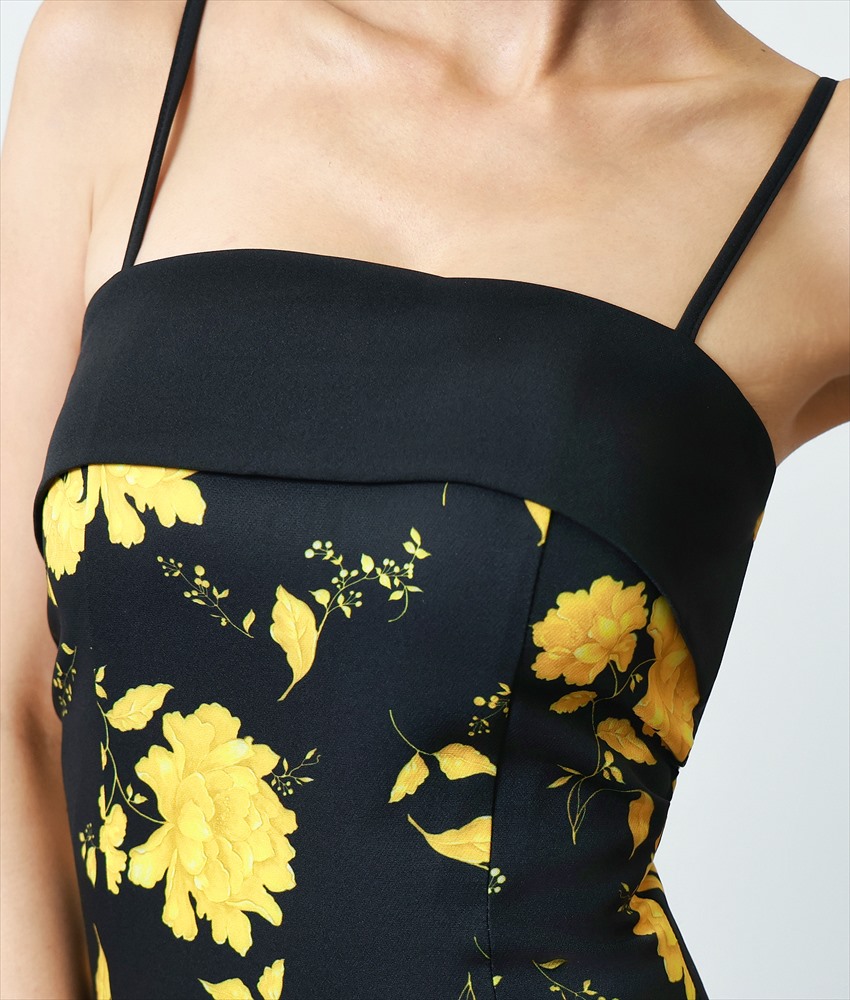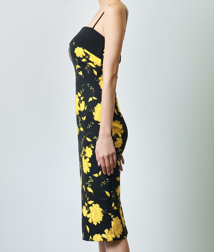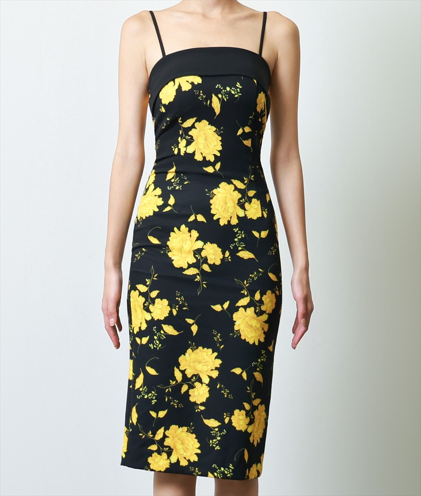 [韓国製][rinfarre]ベア・ノースリーブ・イエロー・ブラック・花柄・ミディアムドレス・タイト・ワンピース[奈月セナ着用][送料無料] [cd-k06201gi]