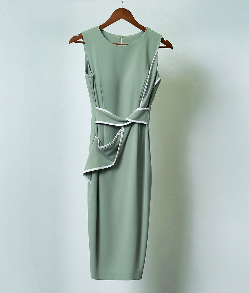 [韓国製][rinfarre]シンプル・無地・フリルポイント・ウエストタック・ノースリーブ・タイト・ミディアムドレス・ワンピース[山崎みどり着用][送料無料]myall [cd-k05599p]