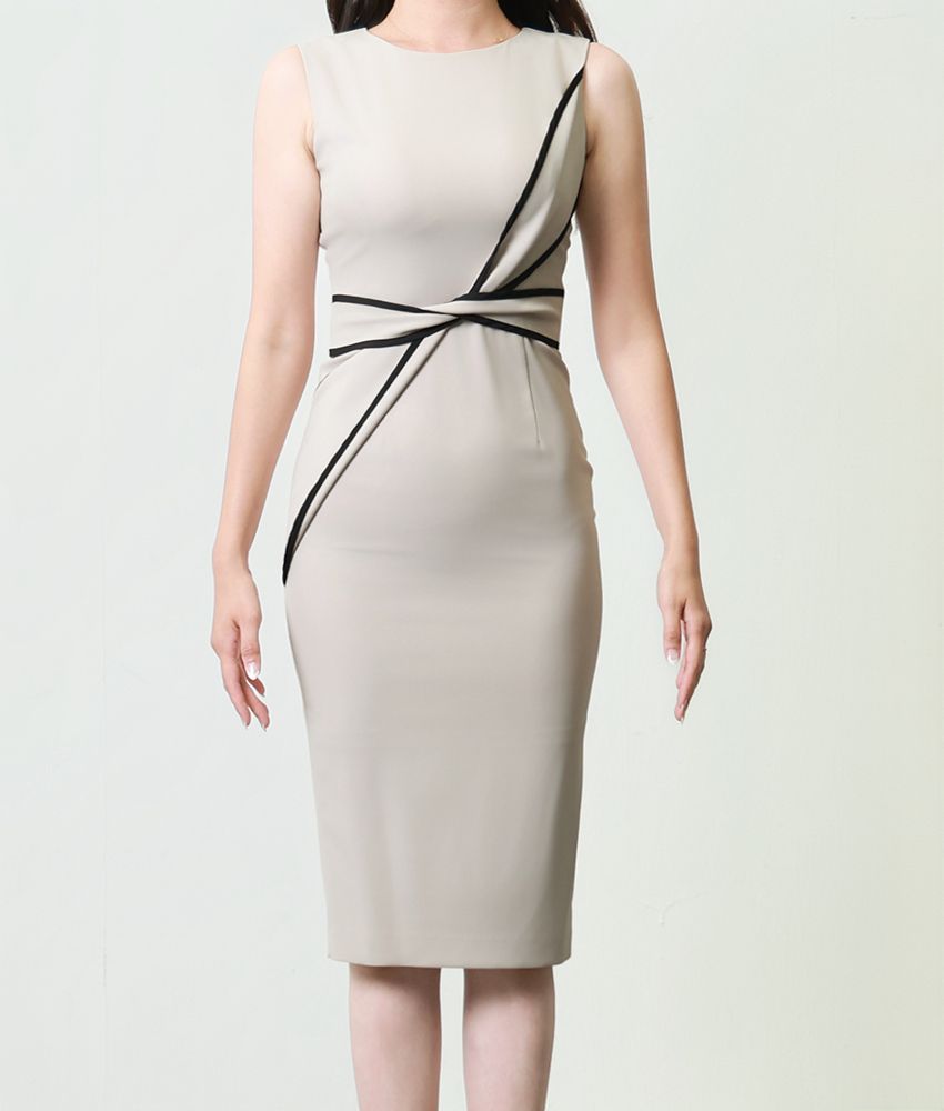 [韓国製][rinfarre] シンプル・バイカラー・リボン・ノースリーブ・タイト・ミディアムドレス・ワンピース[薗田杏奈着用][送料無料] [cd-k06183et]
