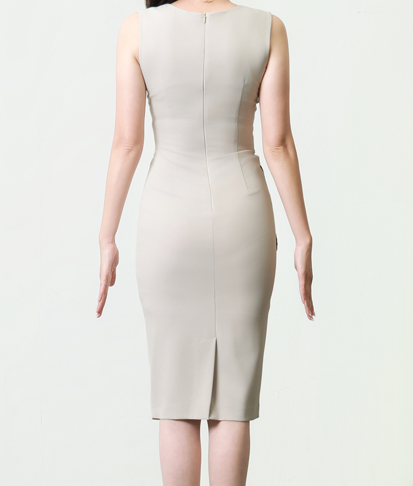 [韓国製][rinfarre]ノースリーブ・シンプル・タイト・ミディアムドレス・ワンピース・アイボリー[黒木麗奈着用][送料&代引き手数料無料] [cd-k06152p]
