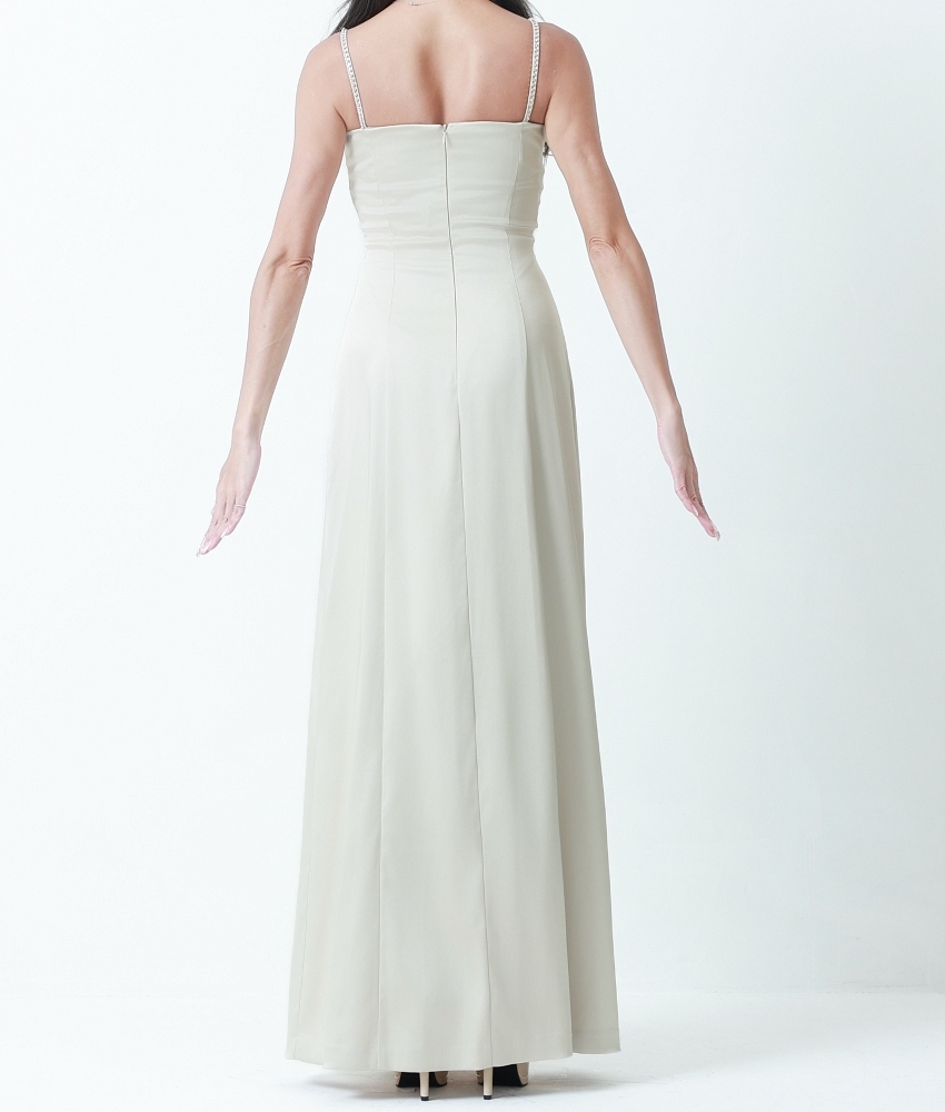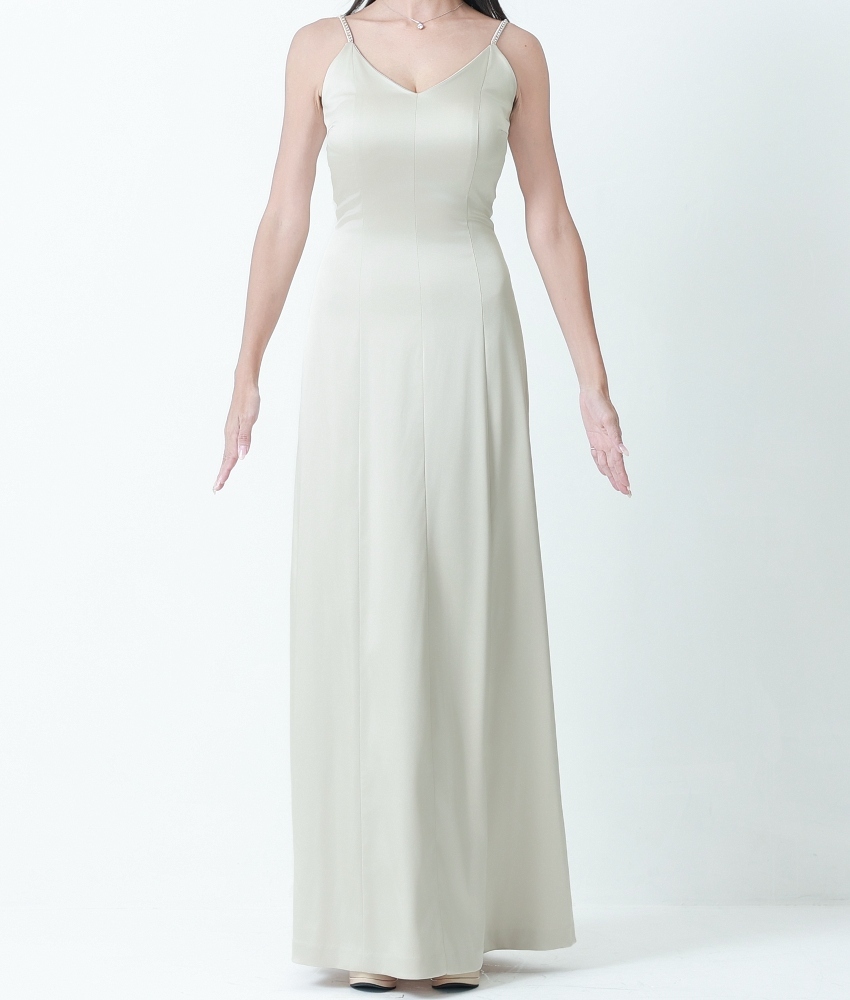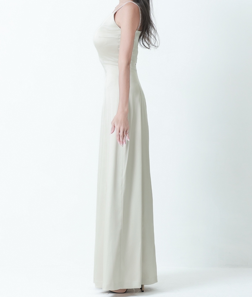 [韓国製][rinfarre] サテン・ノースリーブ・チェーン・Aライン・シンプル・ロングドレス・ワンピース[奈月セナ着用][送料無料] [cd-k06195y]