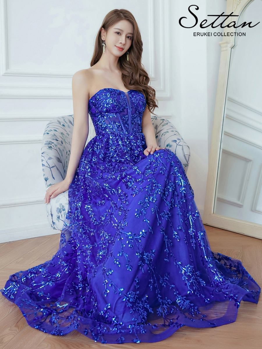 [ERUKEI/SETTAN]ロイヤルブルー・ベア・ビスチェ・Aライン・フレア・スパンコール・刺繍・ロングドレス[送料無料]
