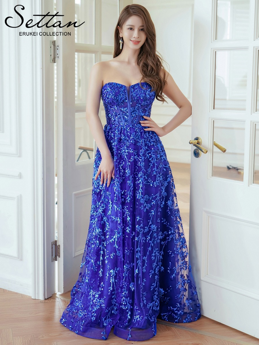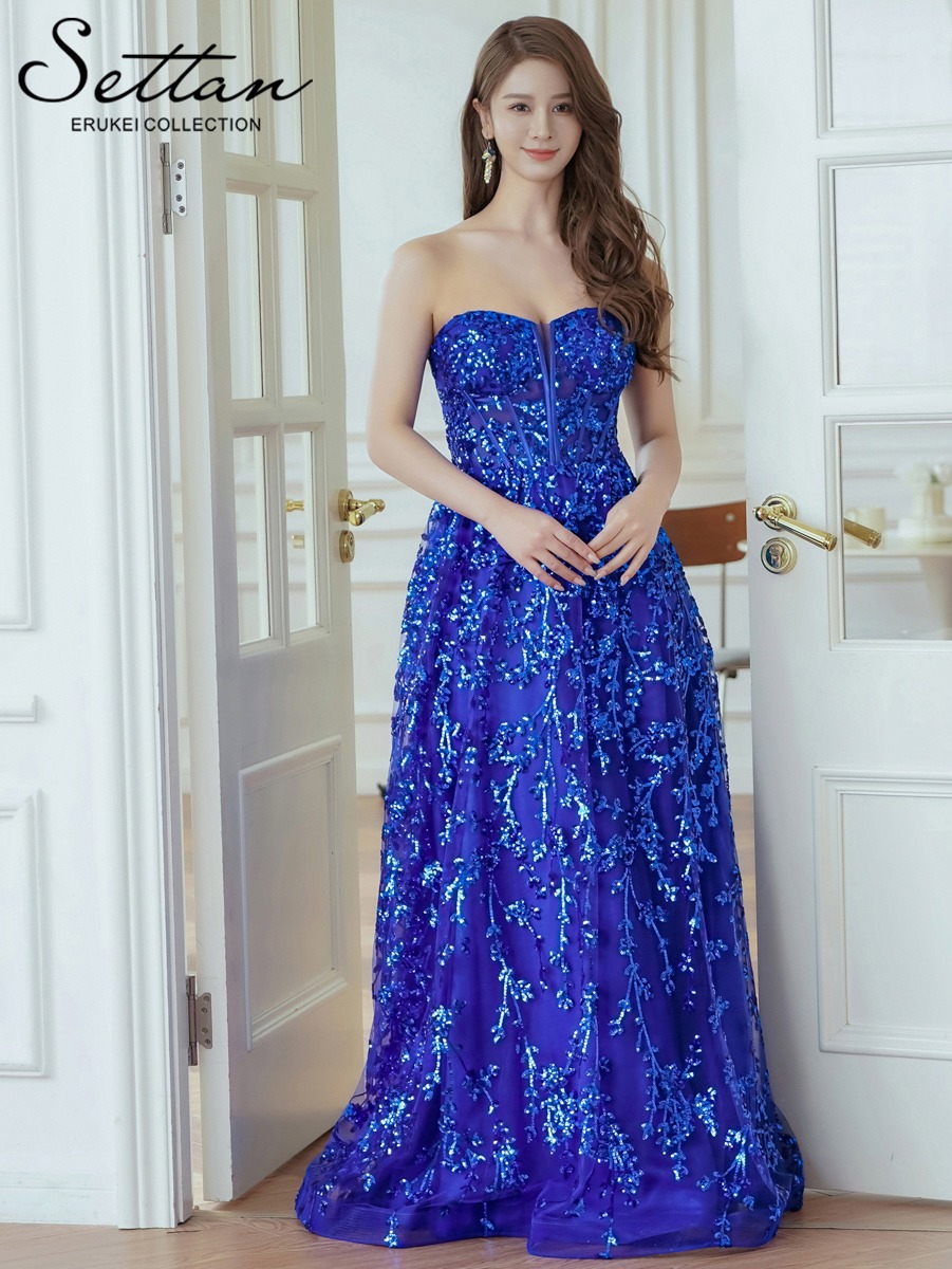 [ERUKEI/SETTAN]ロイヤルブルー・ベア・ビスチェ・Aライン・フレア・スパンコール・刺繍・ロングドレス[送料無料] [lk-s35203]