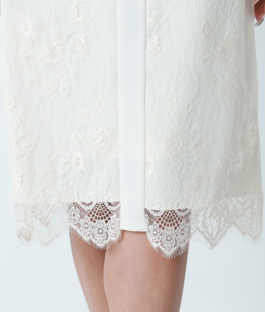 [韓国製][rinfarre]ホワイト×ベージュ・総レース・裾シースルー・ストレッチ・七分袖・ロングドレス[山崎みどり着用]《送料&代引き手数料無料》my [cd-k05719im]