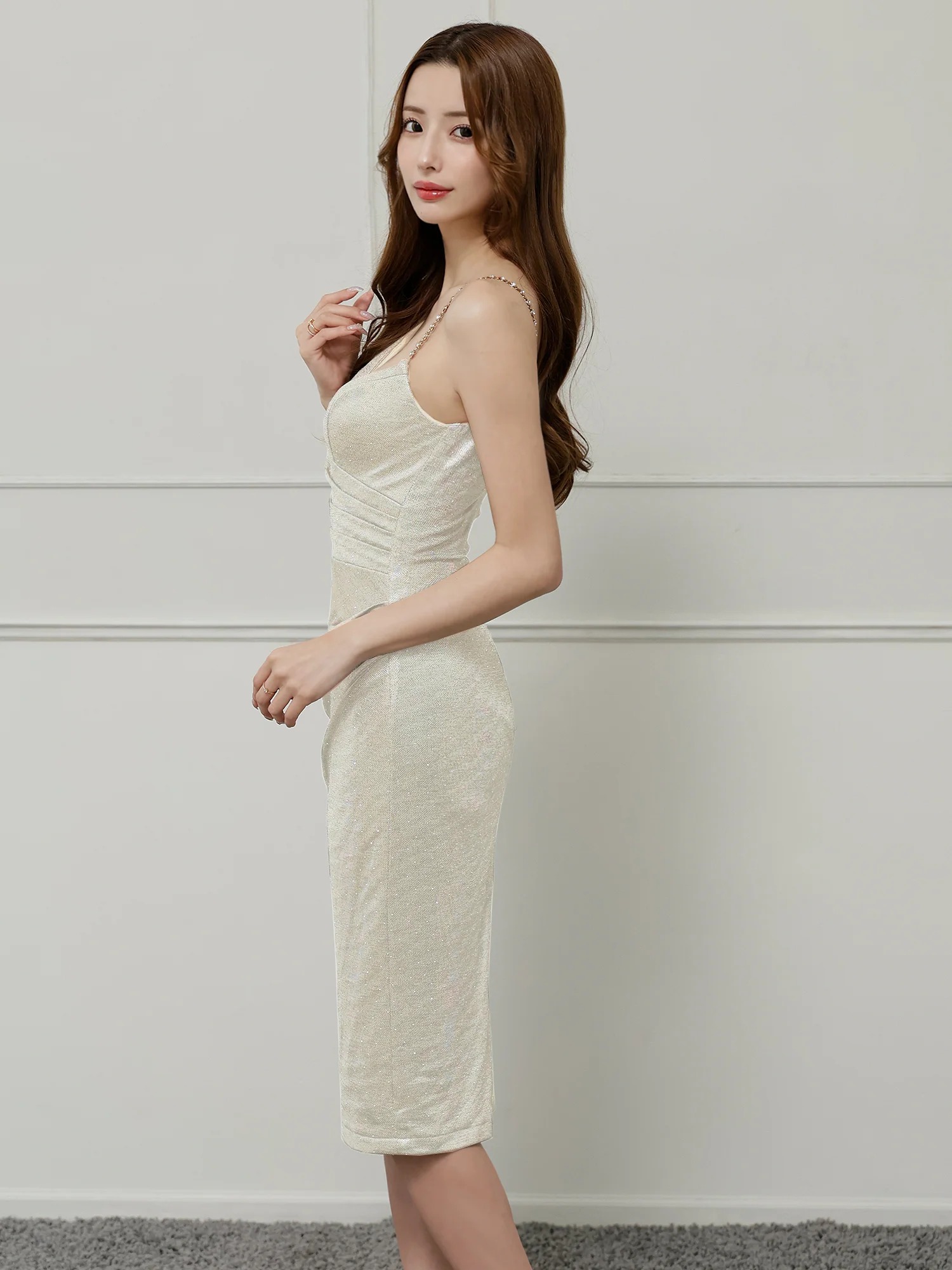 煌めくスタッズがボディラインに沿って艶やかに輝く、存在感抜群のドレス。 胸元のVカットとタイトなシルエットが、女性らしい曲線美を引き立てます。 肩のチェーンストラップが上品なアクセントとなり、華やかな印象をプラス。 結婚式はもちろんパーティーなどにもおすすめ! ※売り切れのサイズをご希望の際はお問い合わせ下さい。 ※銀座七丁目のCOLORDRESSGINZAでもご試着可能です。 |