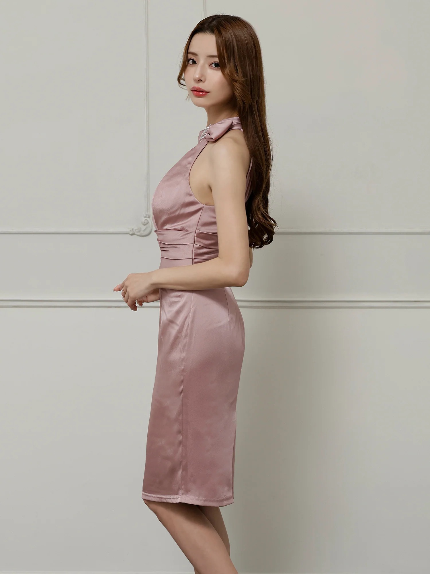 [Veautt]ホルターネック・ウエストマーク・ドレープ・ビジュー・タイトドレス《送料&代引き手数料無料》 [ar-vt022524]