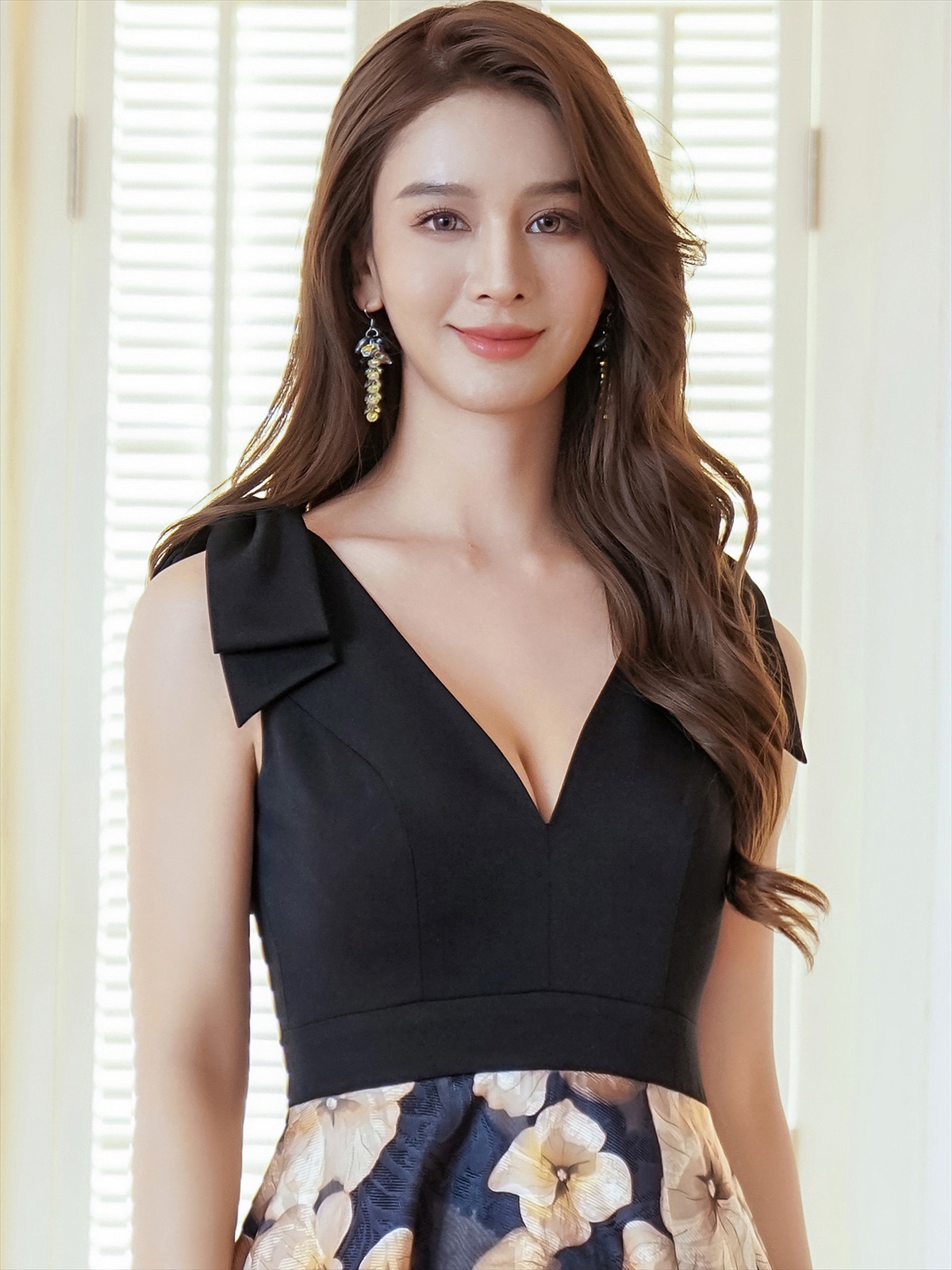 [ERUKEI SETTAN]シフォン・花柄・フラワープリント・Aライン・Vネック・ノースリーブ・ロングドレス[黒木麗奈着用]《送料&代引き手数料無料》 [lk-s35901]