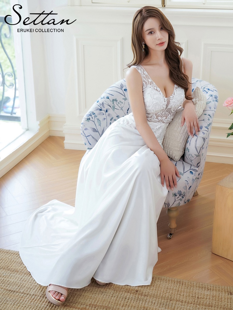 [ERUKEI SETTAN]ノースリーブ・サテン・刺繍・ハイウエスト・セクシー・シースルー・Aライン・ロングドレス[山崎みどり着用]《送料&代引き手数料無料》mypk [lk-s36501]