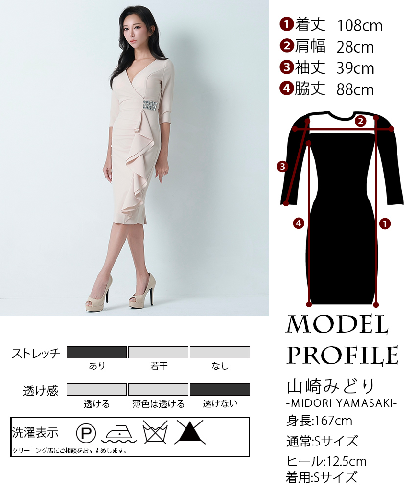 タイトラインのミディアムドレスワンピース。 上品で落ち着いた雰囲気の中にも品格ある存在感を放つドレスです。 フリルとビジューで大人の華やかさを演出します。 お仕事用はもちろん、パーティーなど華やかな場面でも◎ ※韓国製の人気ワンピースです。 ※売り切れ商品をご希望の際はお問い合わせ下さい。 ※銀座七丁目の店舗でもご試着可能です。 |