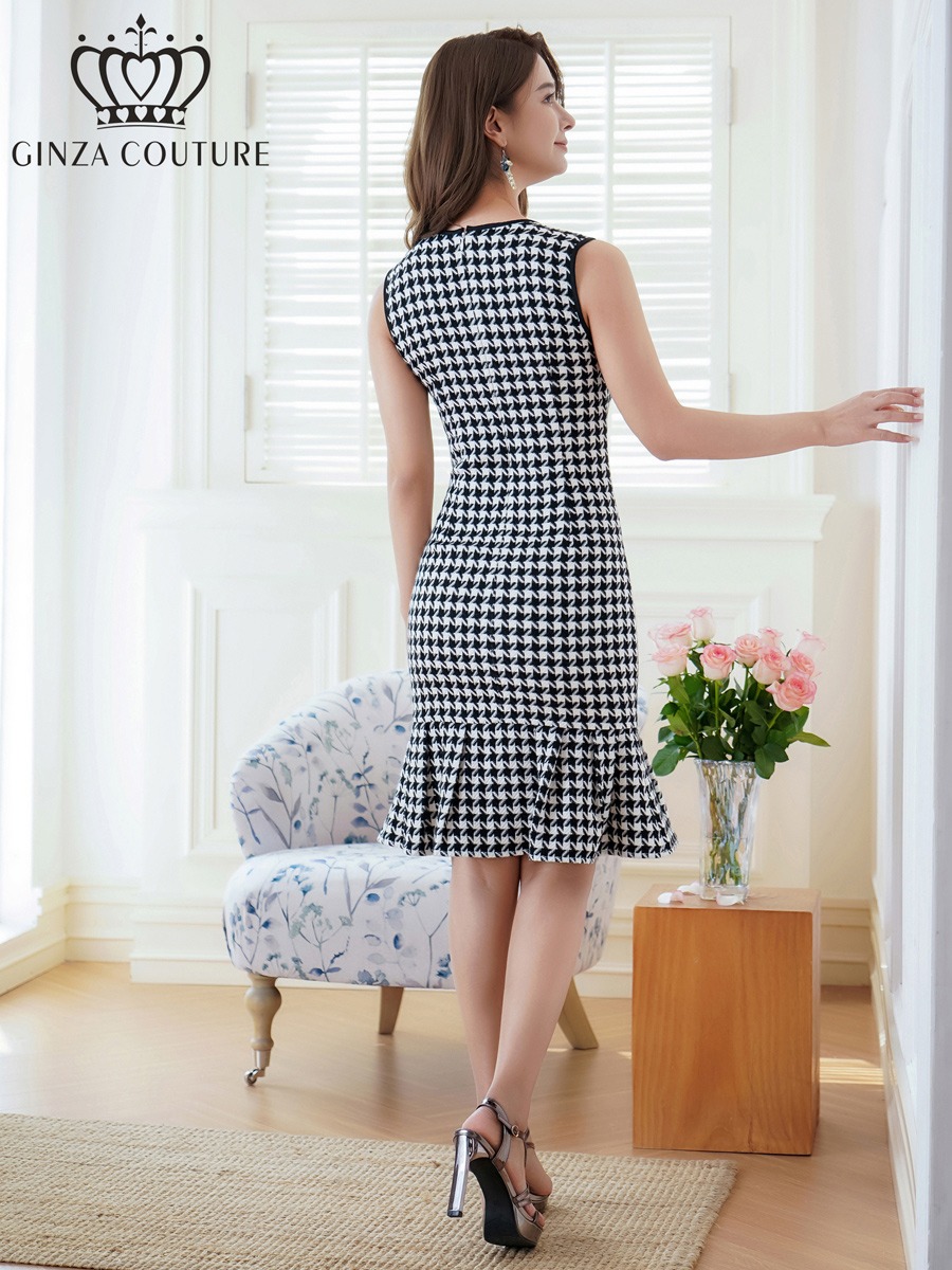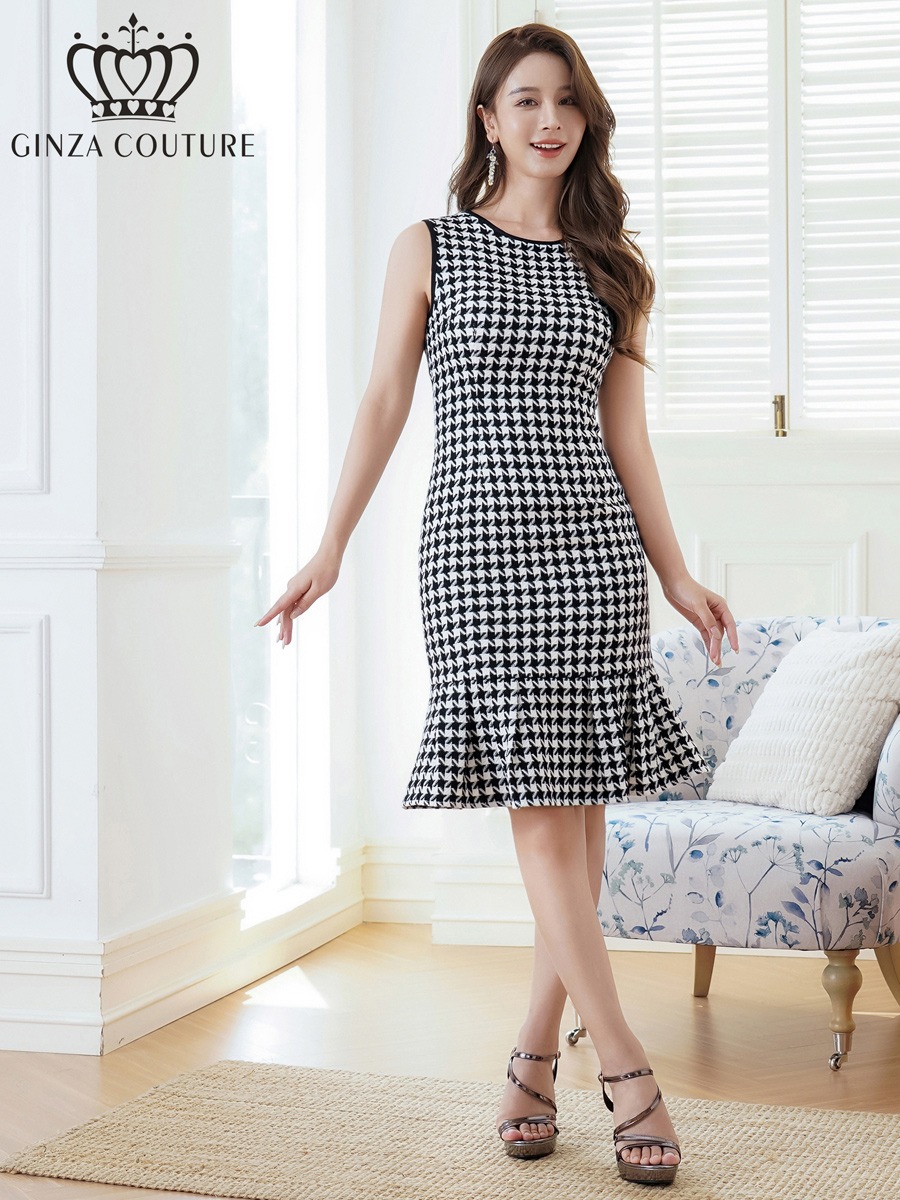 [ERUKEI/GINZA COUTURE]ホワイト×ブラック・ノースリーブ・マーメイド・シンプル・ミディアムドレス・ワンピース[送料無料] [lk-c24167]