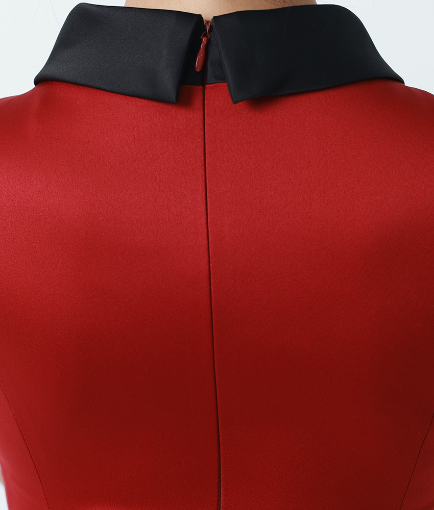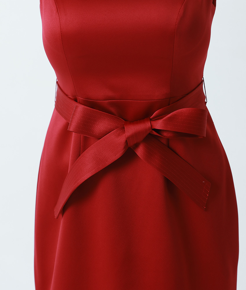 [ERUKEI]バイカラー・サテン・シンプル・ハイネック・リボンベルト・ノースリーブ・タイト・ミニドレス・ワンピース[山崎みどり着用][送料無料] mywr [lk-c25213]