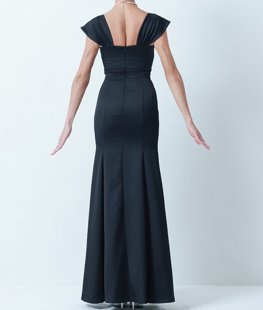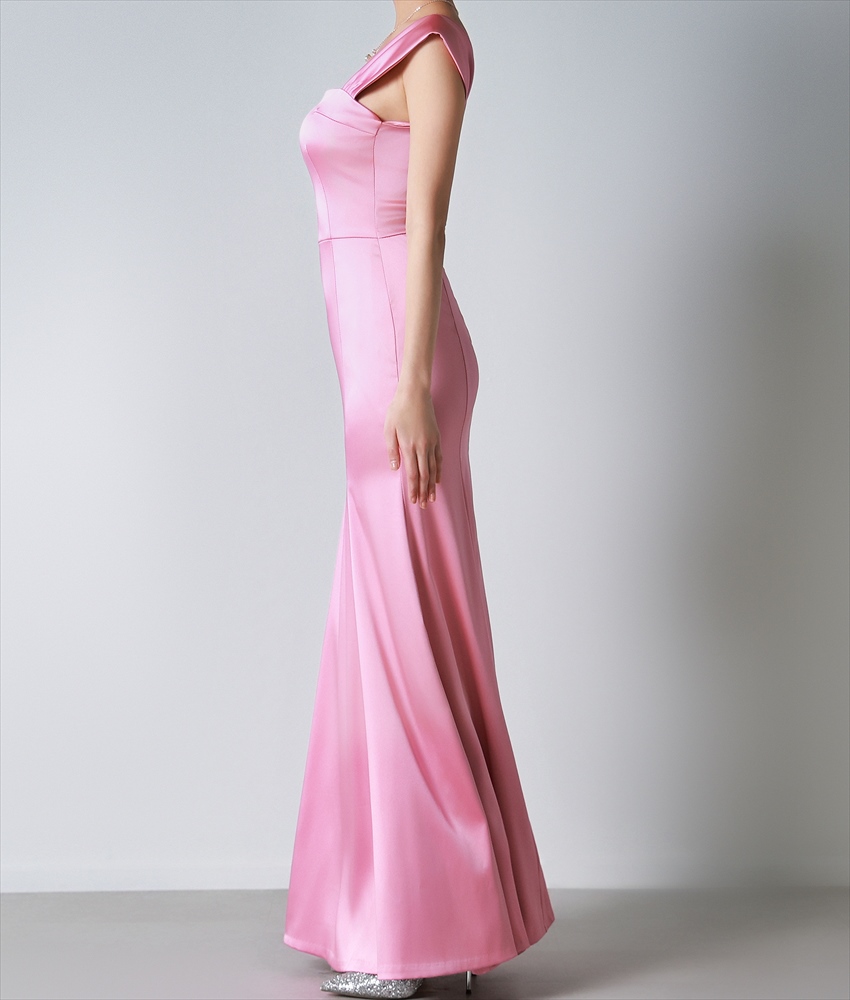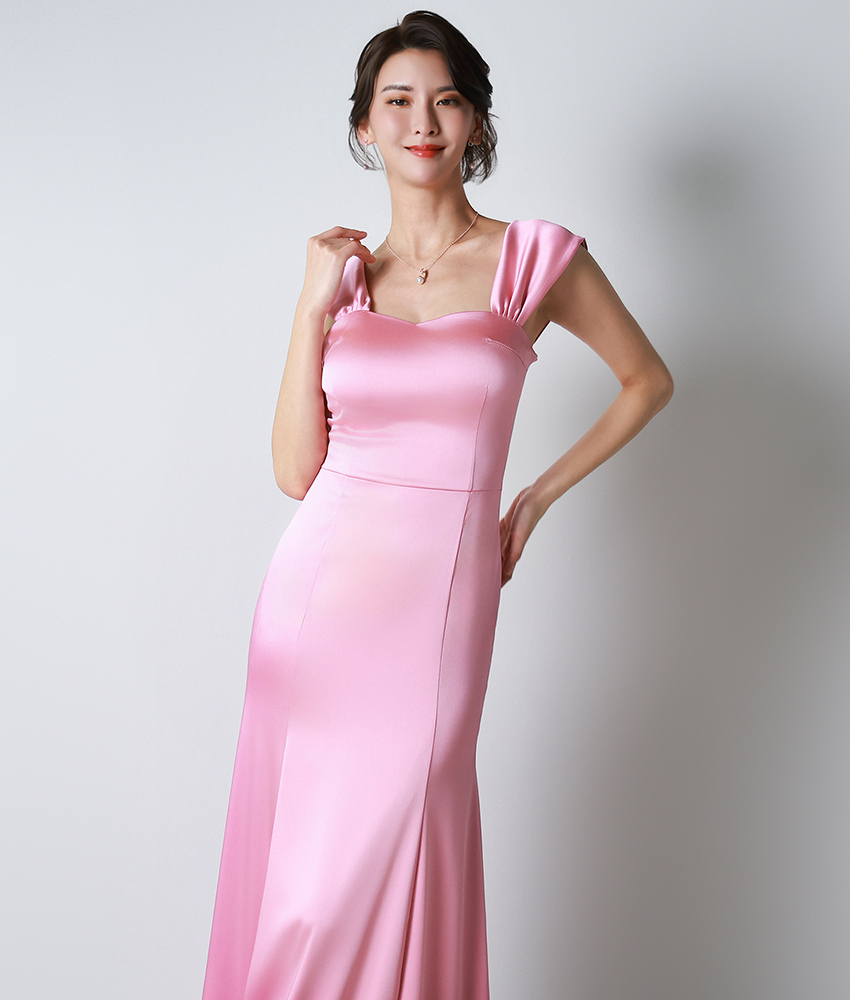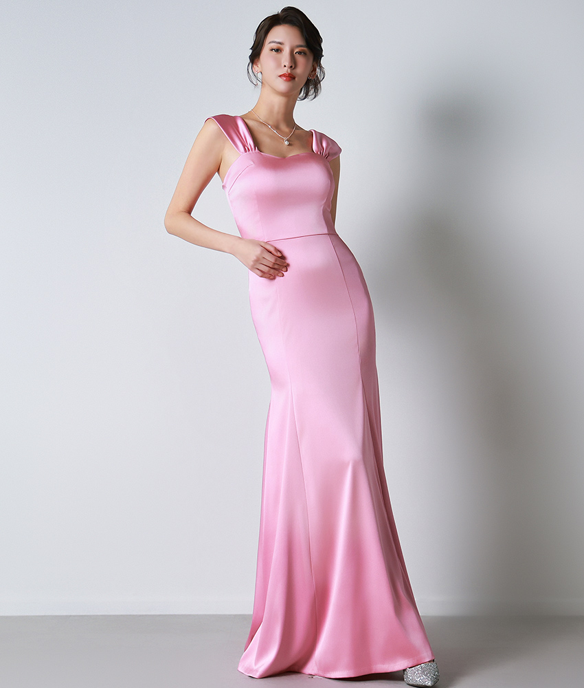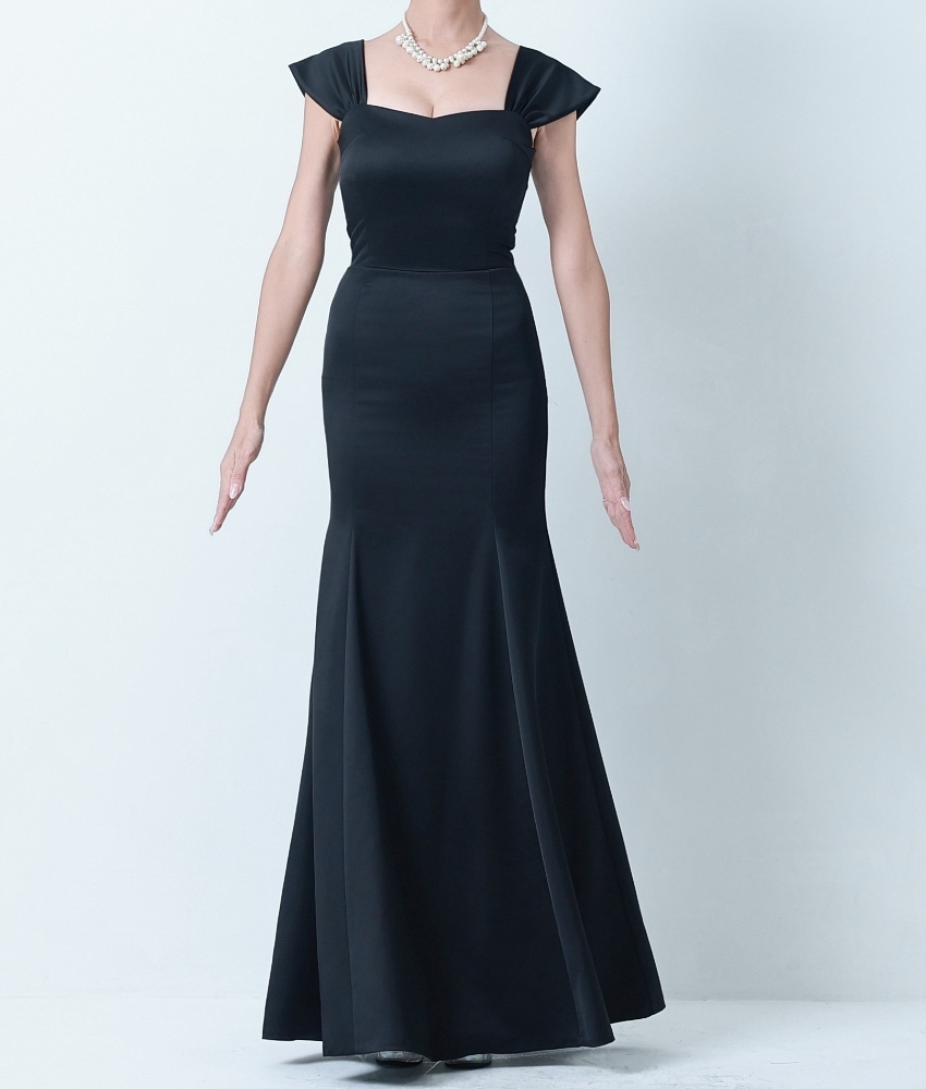 [韓国製][rinfarre]サテン・キャップスリーブ・ハートネック・ノースリーブ・マーメイドライン・ロングドレス・ワンピース[山崎みどり着用][送料無料]mybk [cd-k06217p]