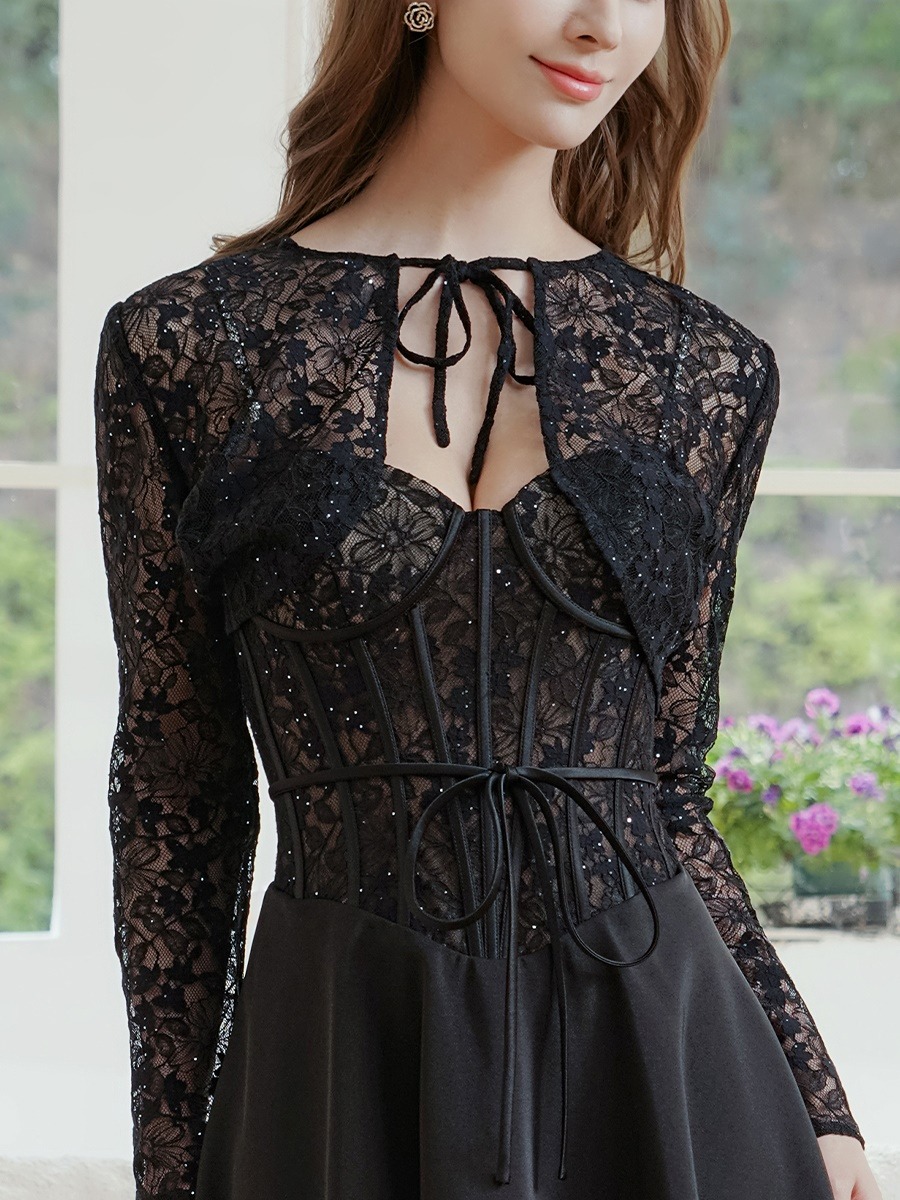 [ERUKEI/SETTAN]ホワイト・ブラック・2way・コルセット風・ボレロ・レース・スパンコール・キャミソール・Aライン・ミニドレス・ワンピース[送料無料]