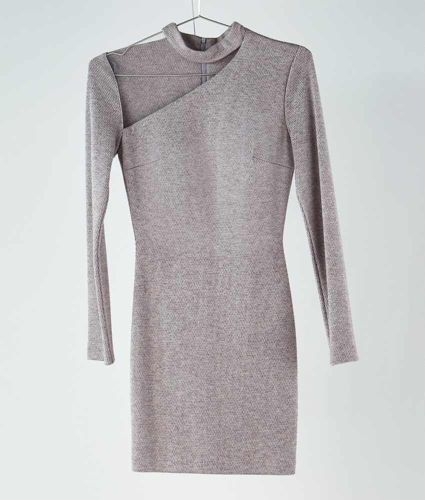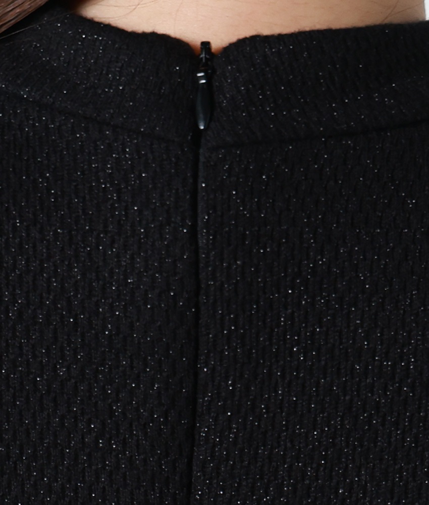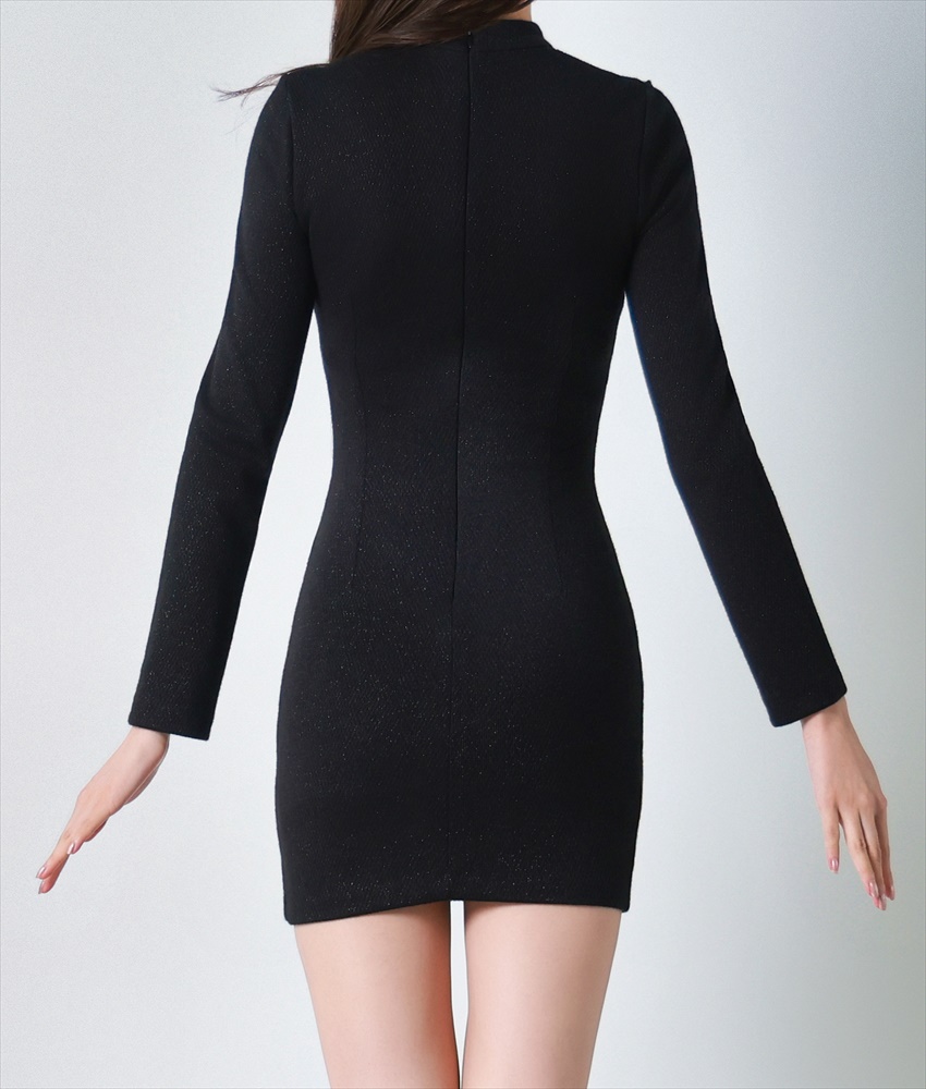 [韓国製][rinfarre]長袖・ミニ・ラメ生地・シアー切替・タイト・ブラック・ブラウン・ストレッチ・ミニドレス・ワンピース[黒木麗奈着用][送料無料]