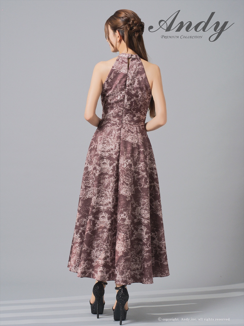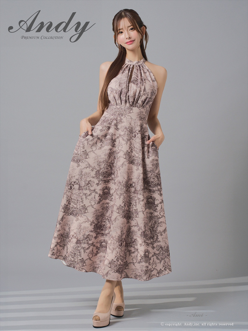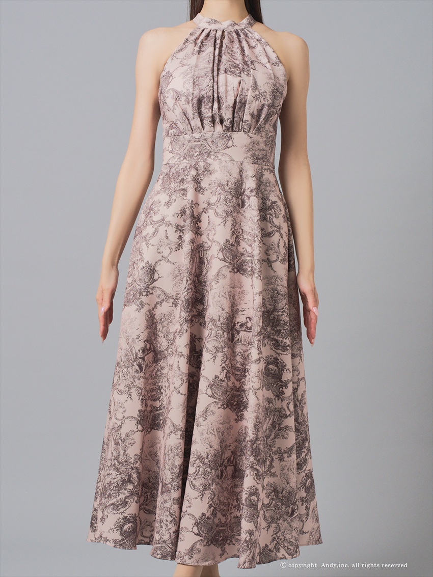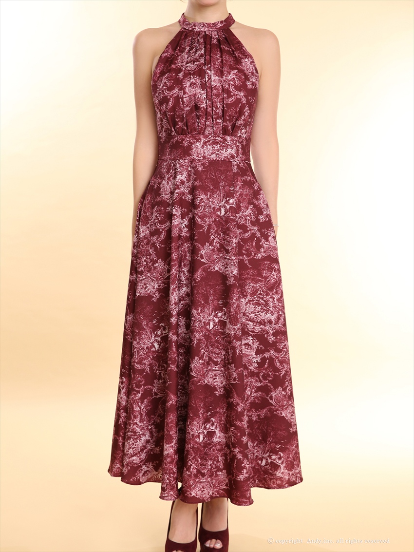 [Andy/an][Andy]ホルターネック・ニュアンス柄・胸元プリーツ・シフォン・Aライン・ノースリーブ・ロングドレス・ワンピース《送料&代引き手数料無料》 [an-on3016]