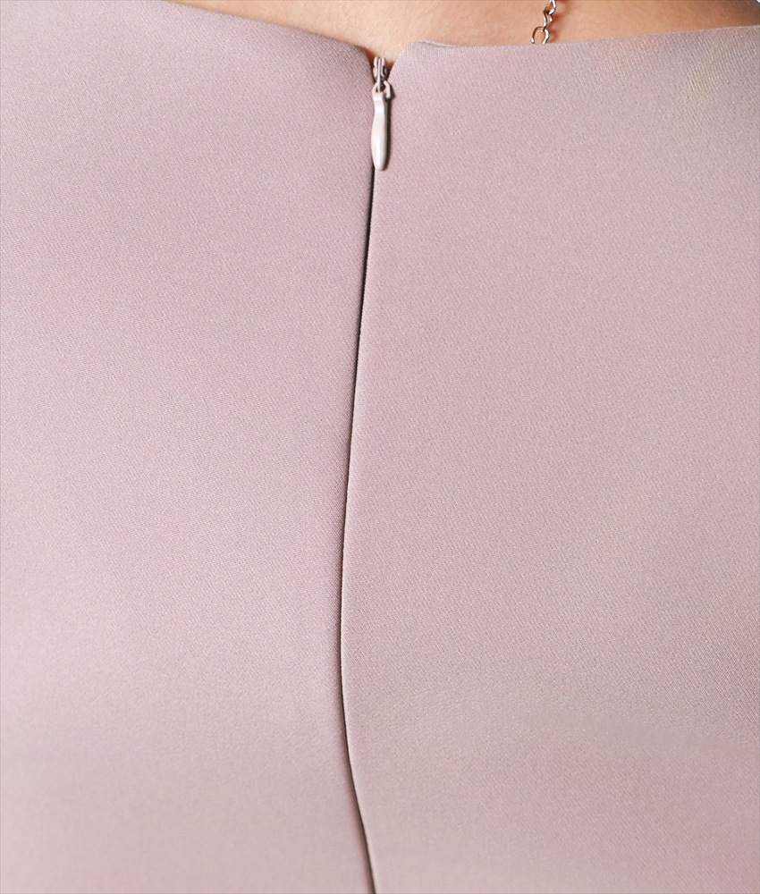 [韓国製][rinfarre]ベージュ・七分袖・トライアングルカット・タイト・ミディアムドレス・ワンピース[奈月セナ着用][送料無料]