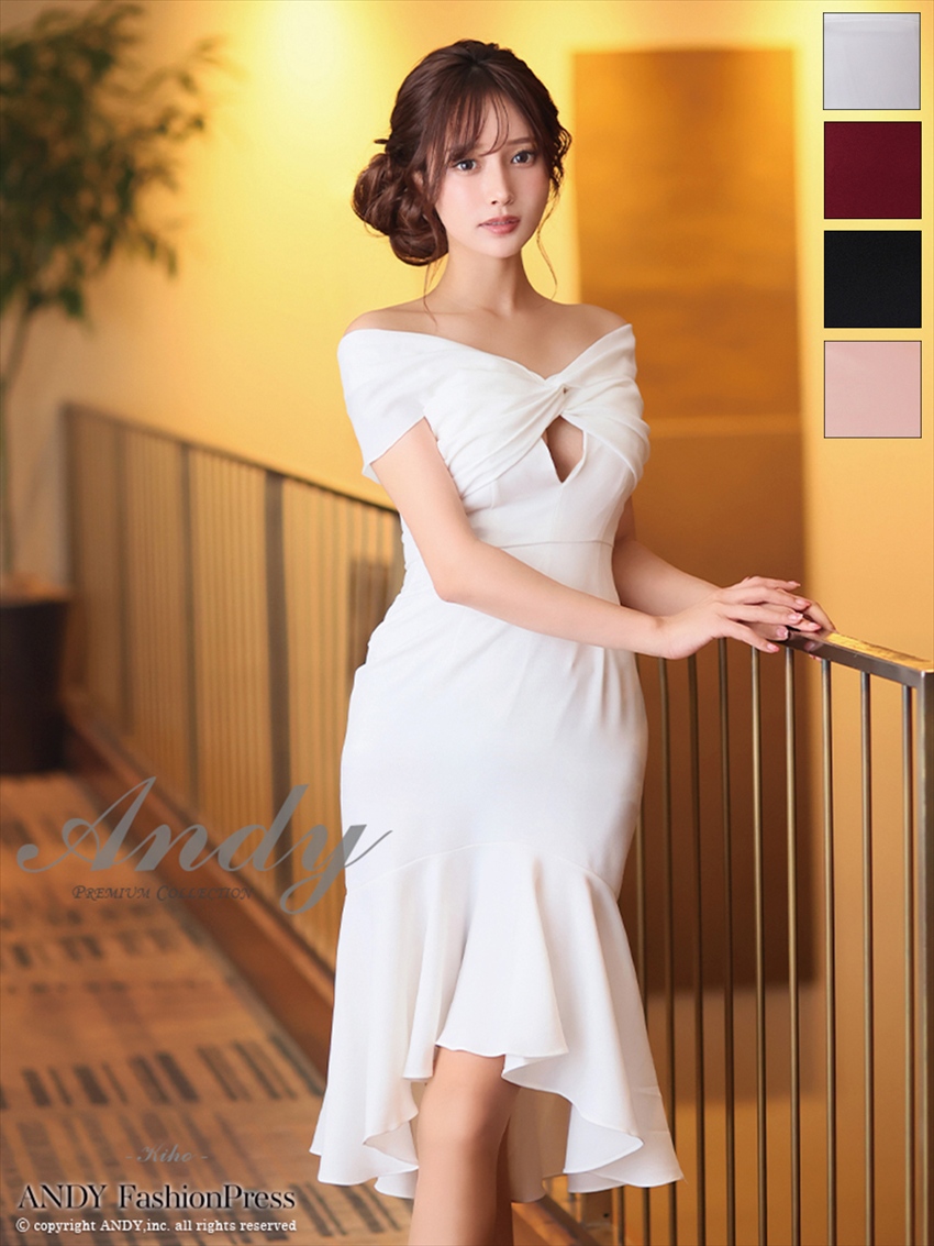 おススメポイント ・・an アン /Andy アンディドレス・・ 膝上丈のタイトミニドレスです。 ボリュームのあるオフショルダーが可愛い一着。 サイドのギャザーが女の子らしさをプ…