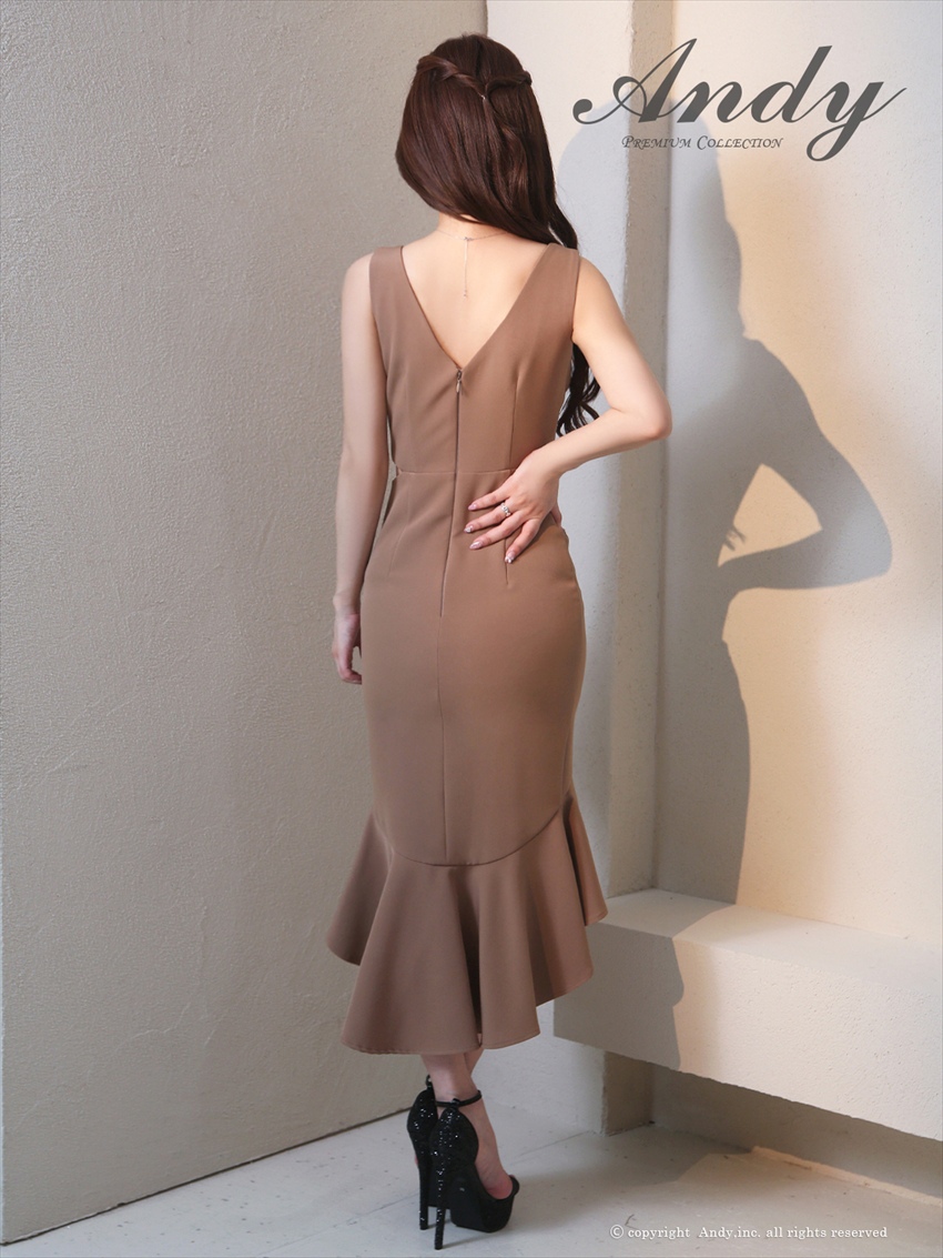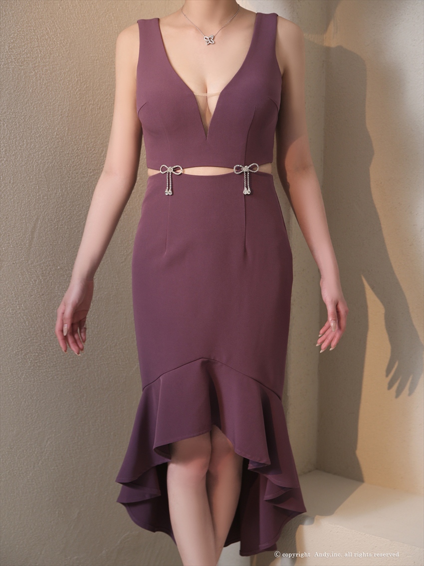 [Andy/an][Andy] Vネック タイト・マーメイド・メタルリング・ミディアムドレス・ワンピース《送料&代引き手数料無料》 [an-on3009]