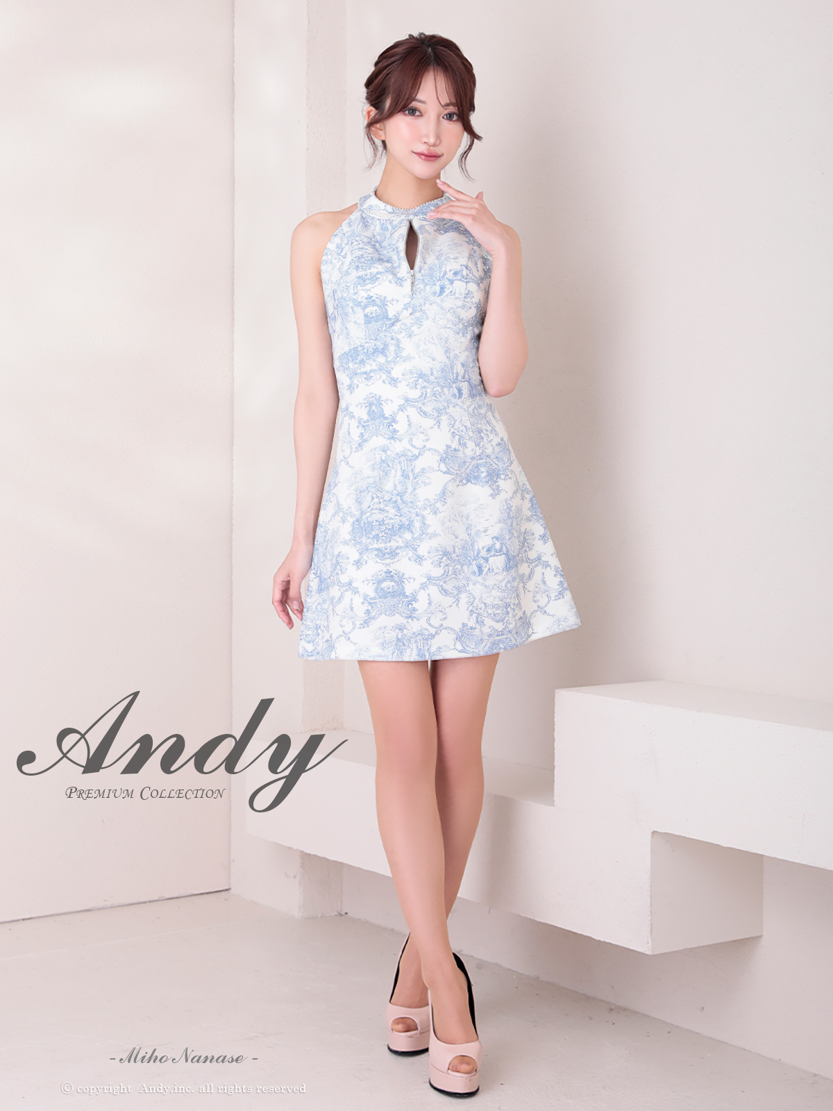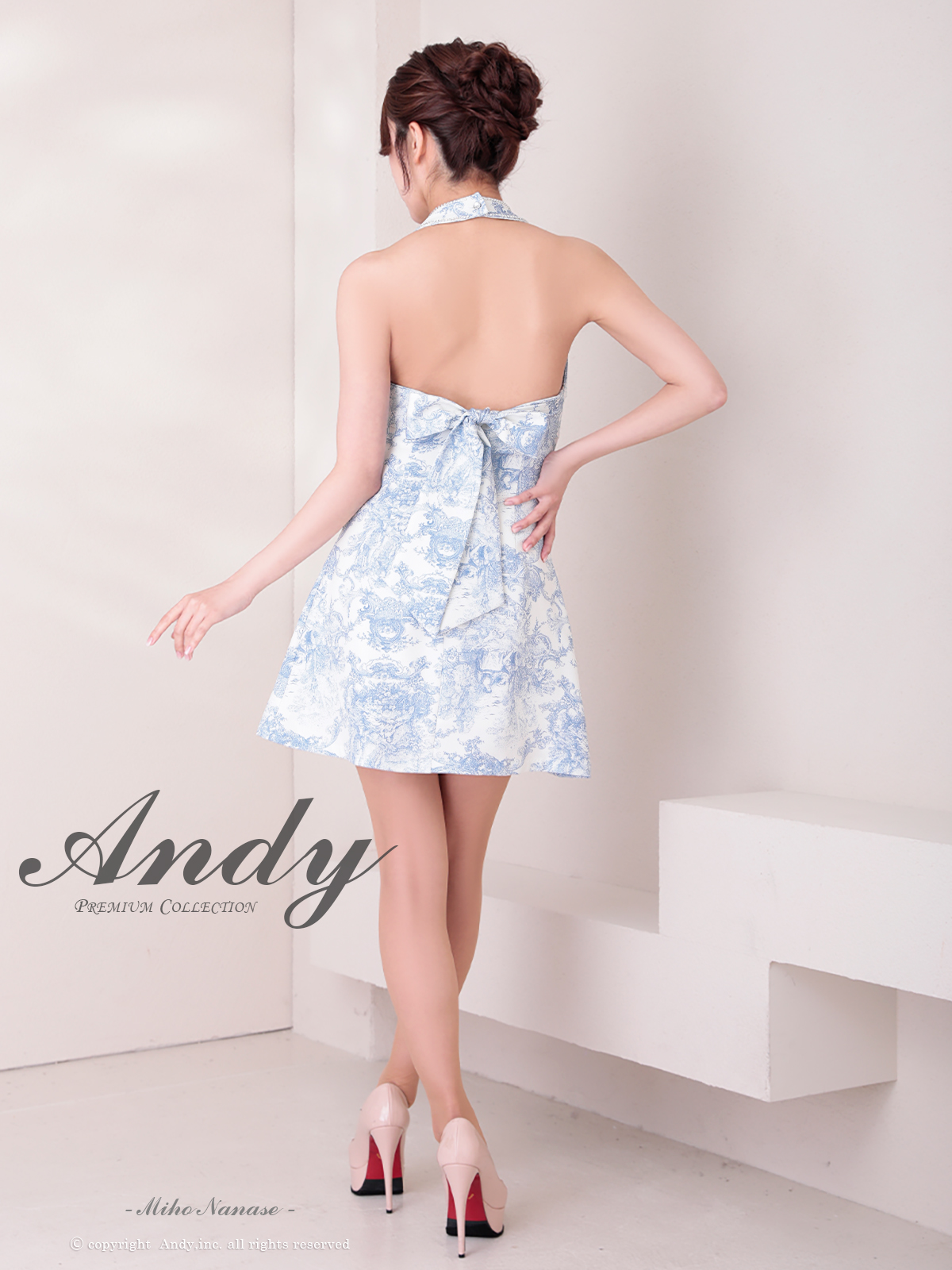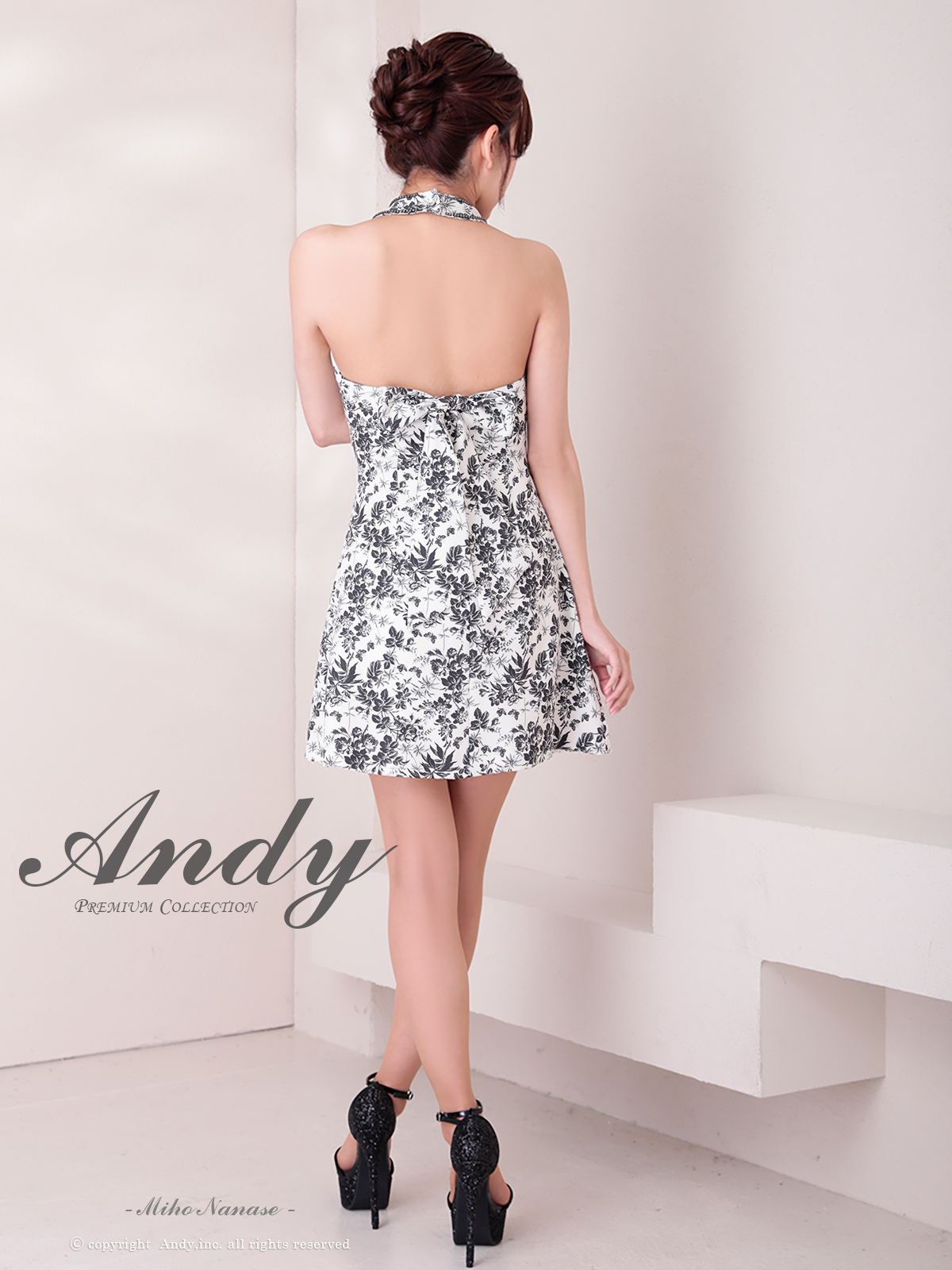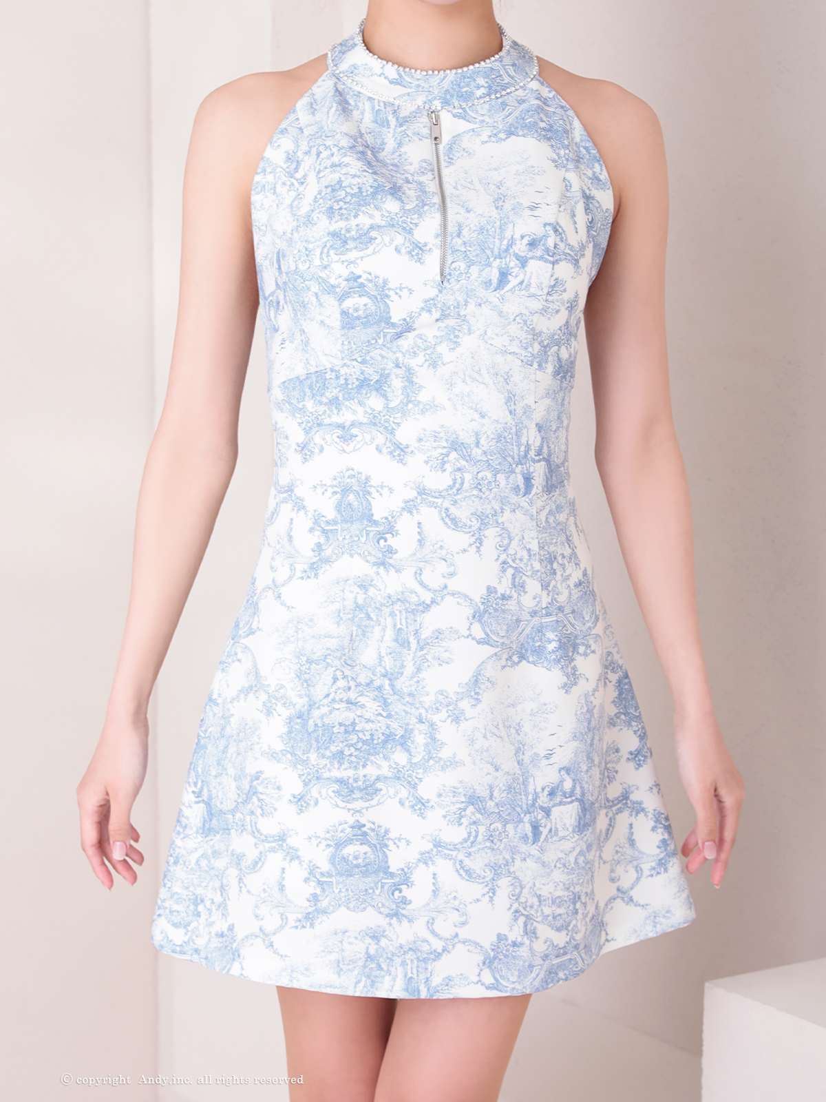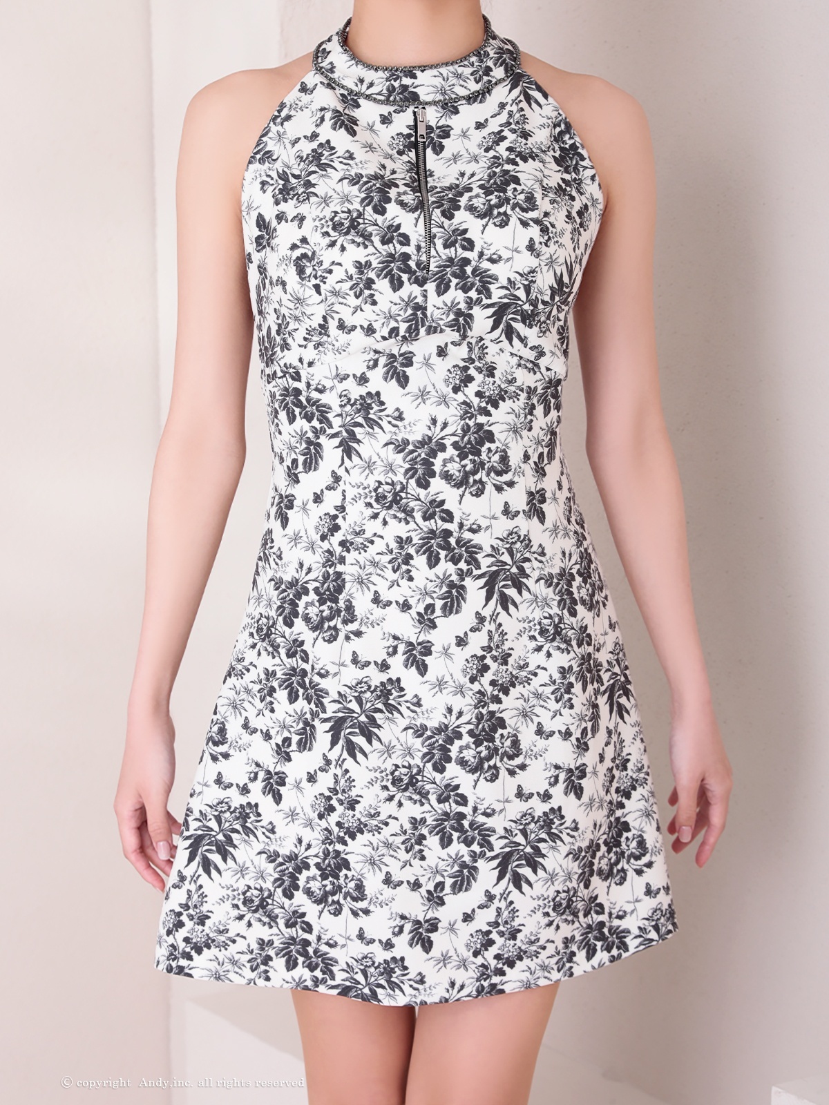 [Andy/an][Andy]ミニ・ホルターネック・花柄・プリント・リボン・ファスナー・Aライン・ノースリーブ・ミニドレス・ワンピース《送料&代引き手数料無料》 [an-on2943]