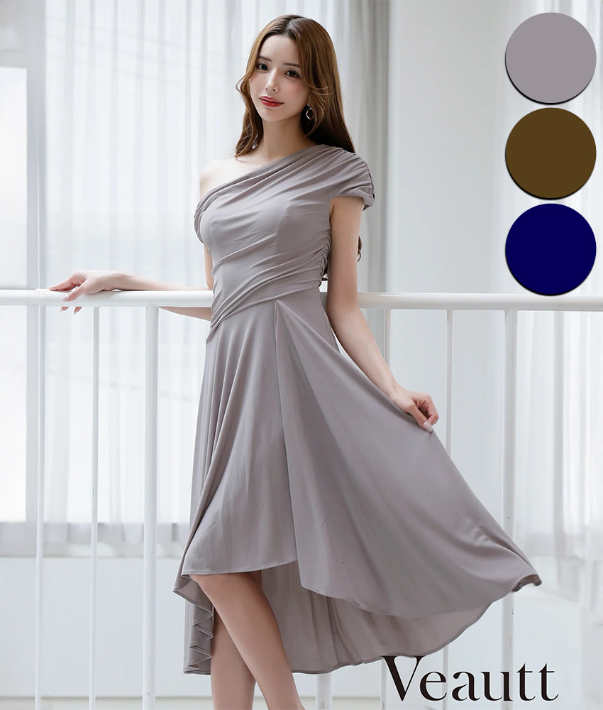 [Veautt]ワンショルダー・アシンメトリー・フレア・ミディアムドレス《送料&代引き手数料無料》 [ar-vt022527]