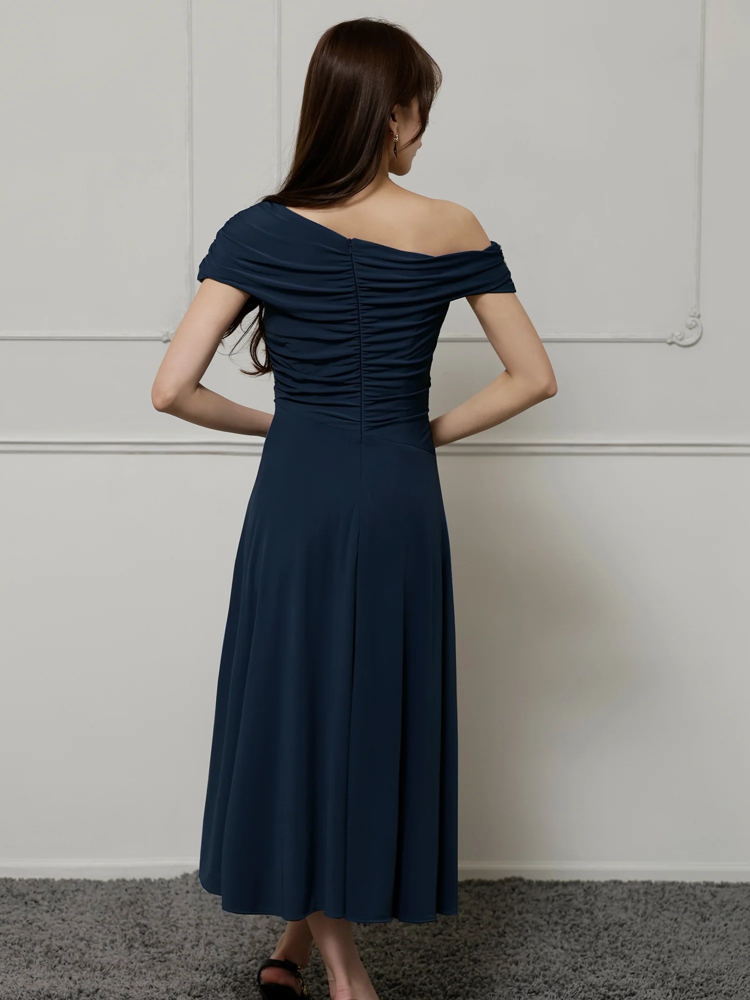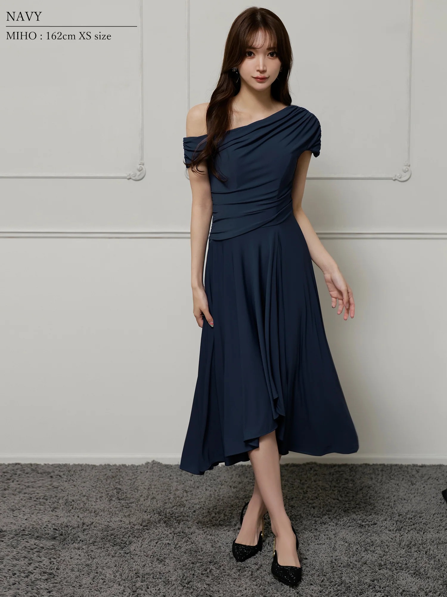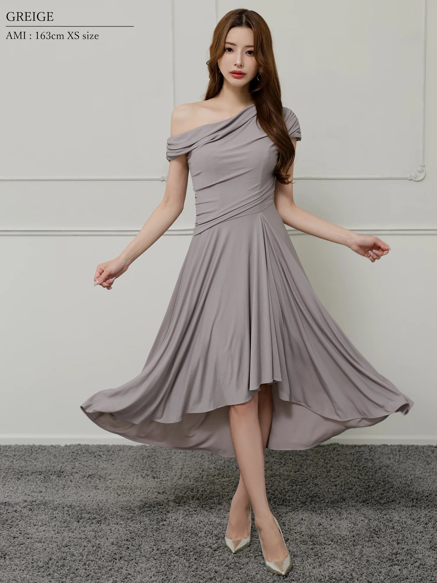 [Veautt]ワンショルダー・アシンメトリー・フレア・ミディアムドレス《送料&代引き手数料無料》