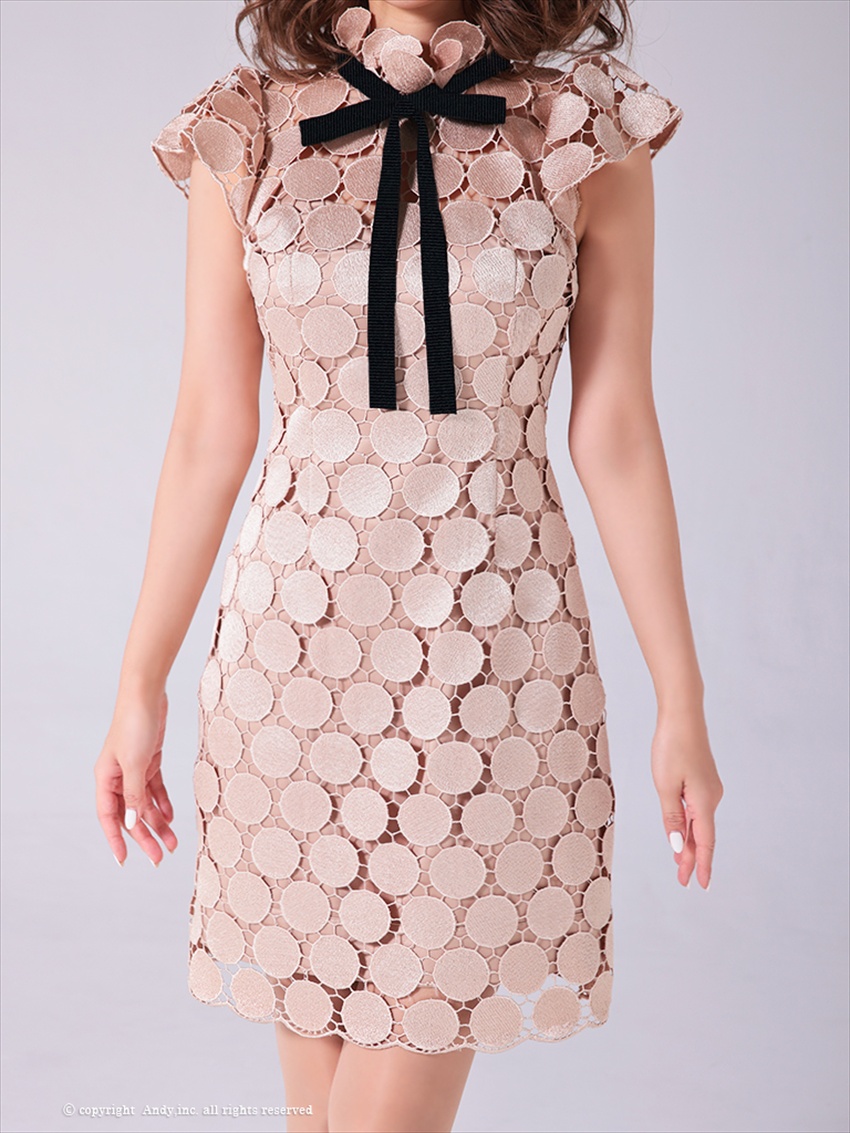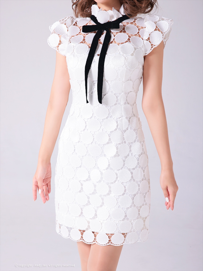 [Andy/an][Andy]半袖・ドットレース・リボン・タイト・ミニドレス・ワンピース《送料&代引き手数料無料》 [an-on2807]