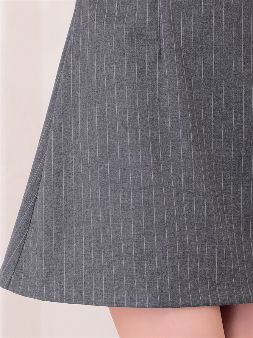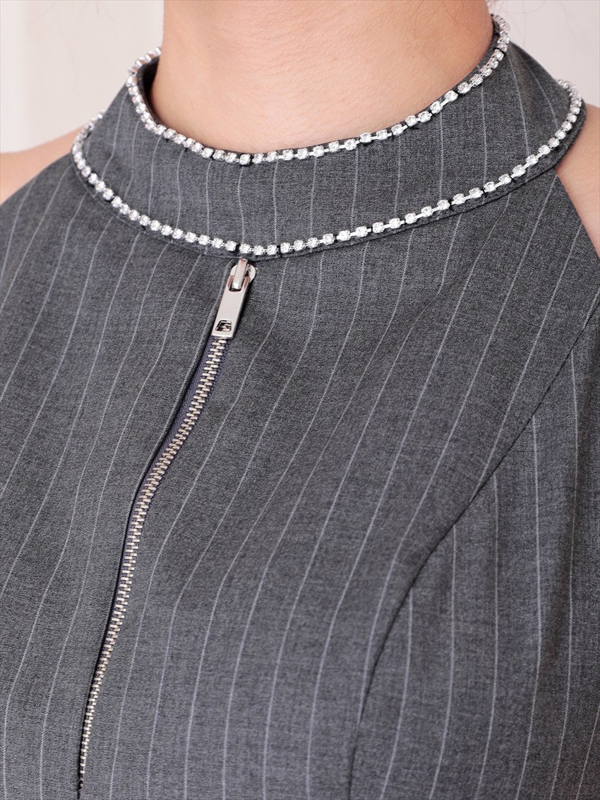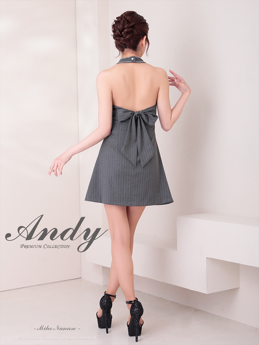 [Andy/an]ミニ・ホルターネック・グレー・ストライプ・リボン・Aライン・ノースリーブ・ミニドレス・ワンピース《送料&代引き手数料無料》 [an-on2933]