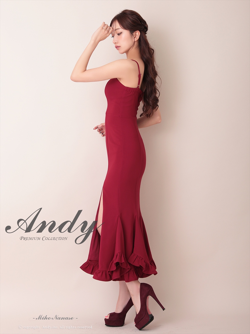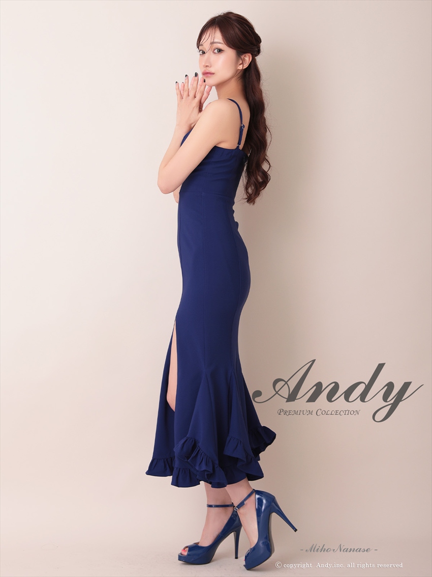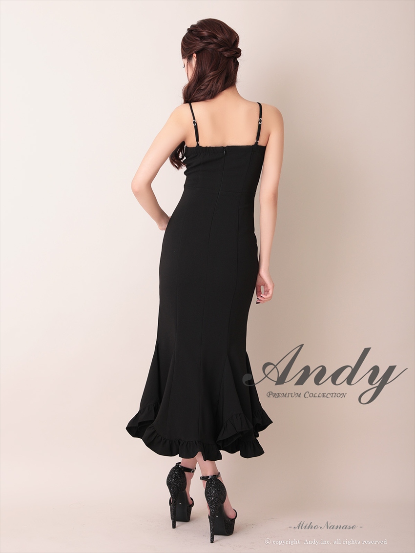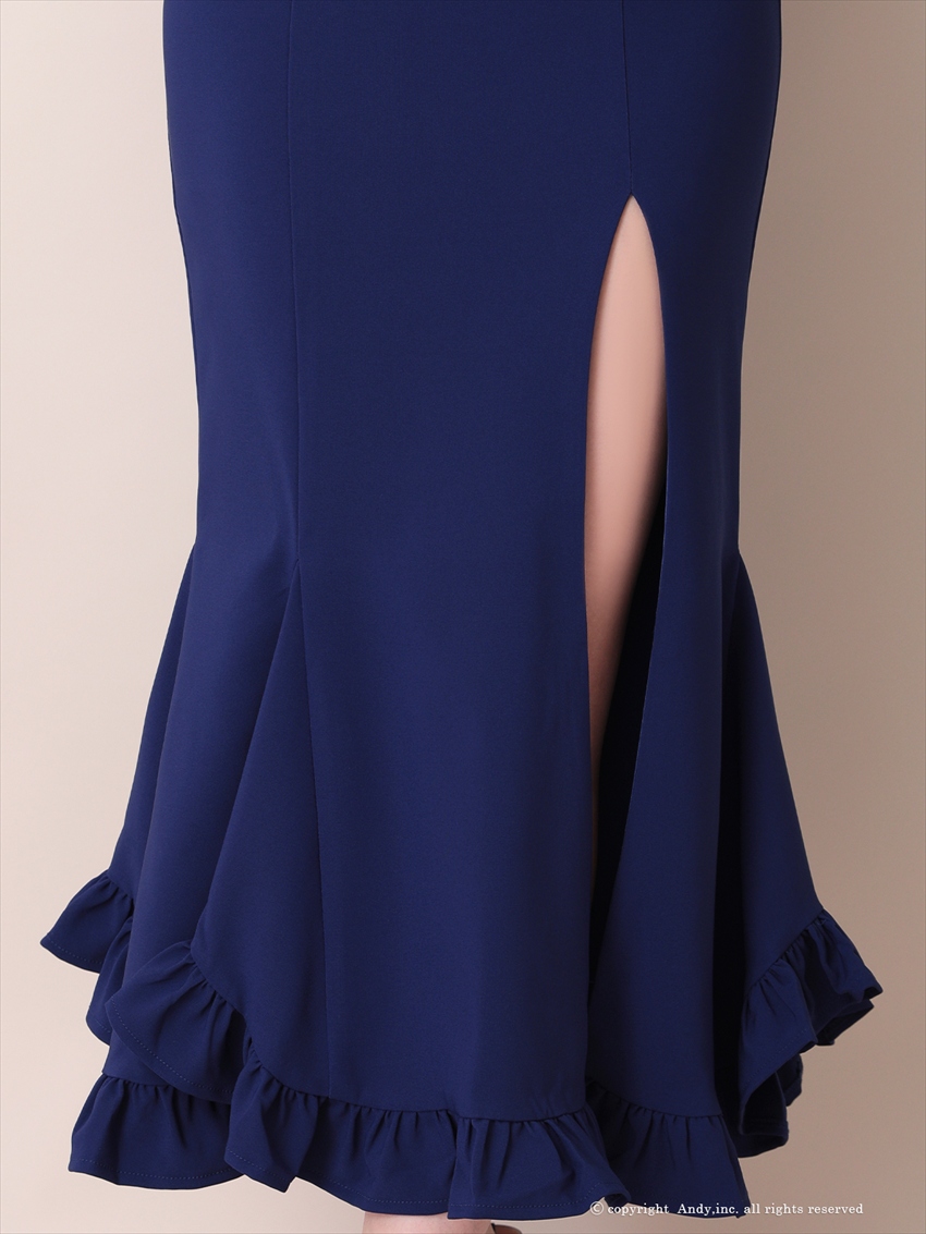 [Andy/an][Andy]シンプル・ワンカラー・バストシアー・キャミソール・裾フリル・スリット・マーメイド・ミディアムドレス《送料&代引き手数料無料》 [an-on2959]