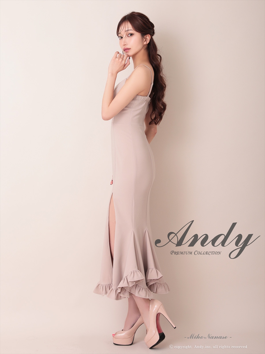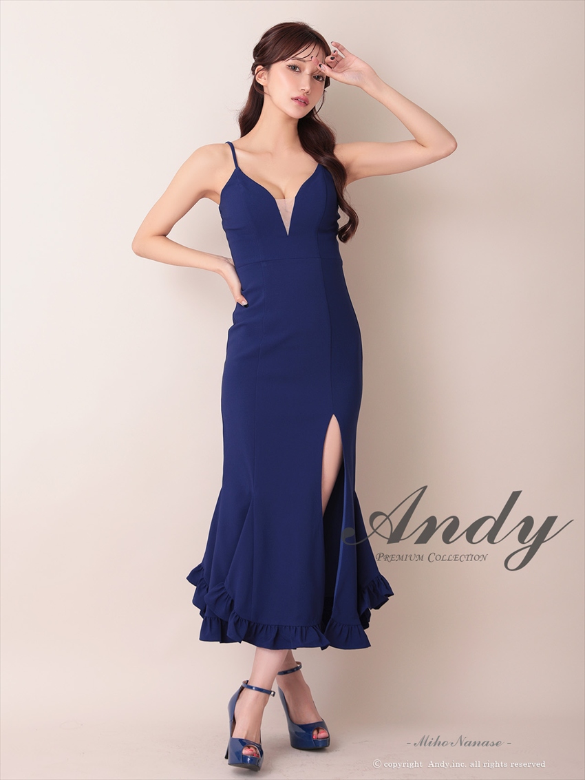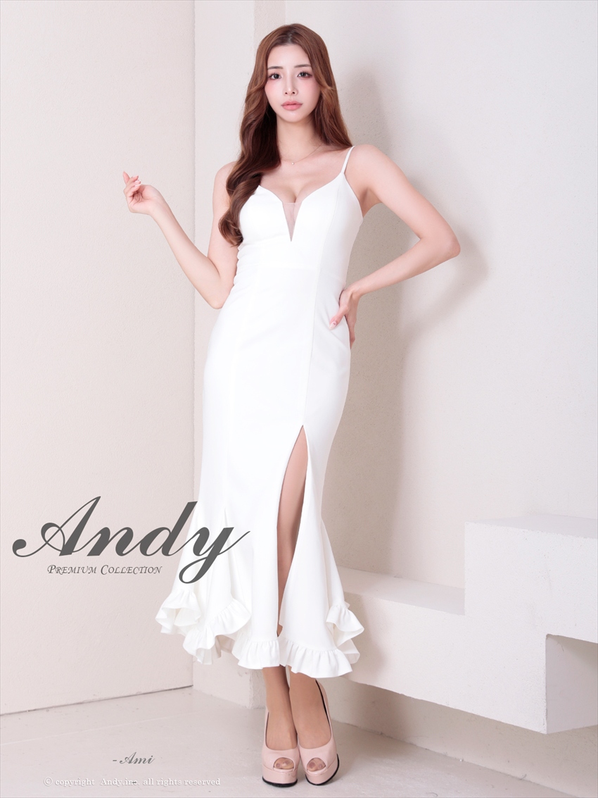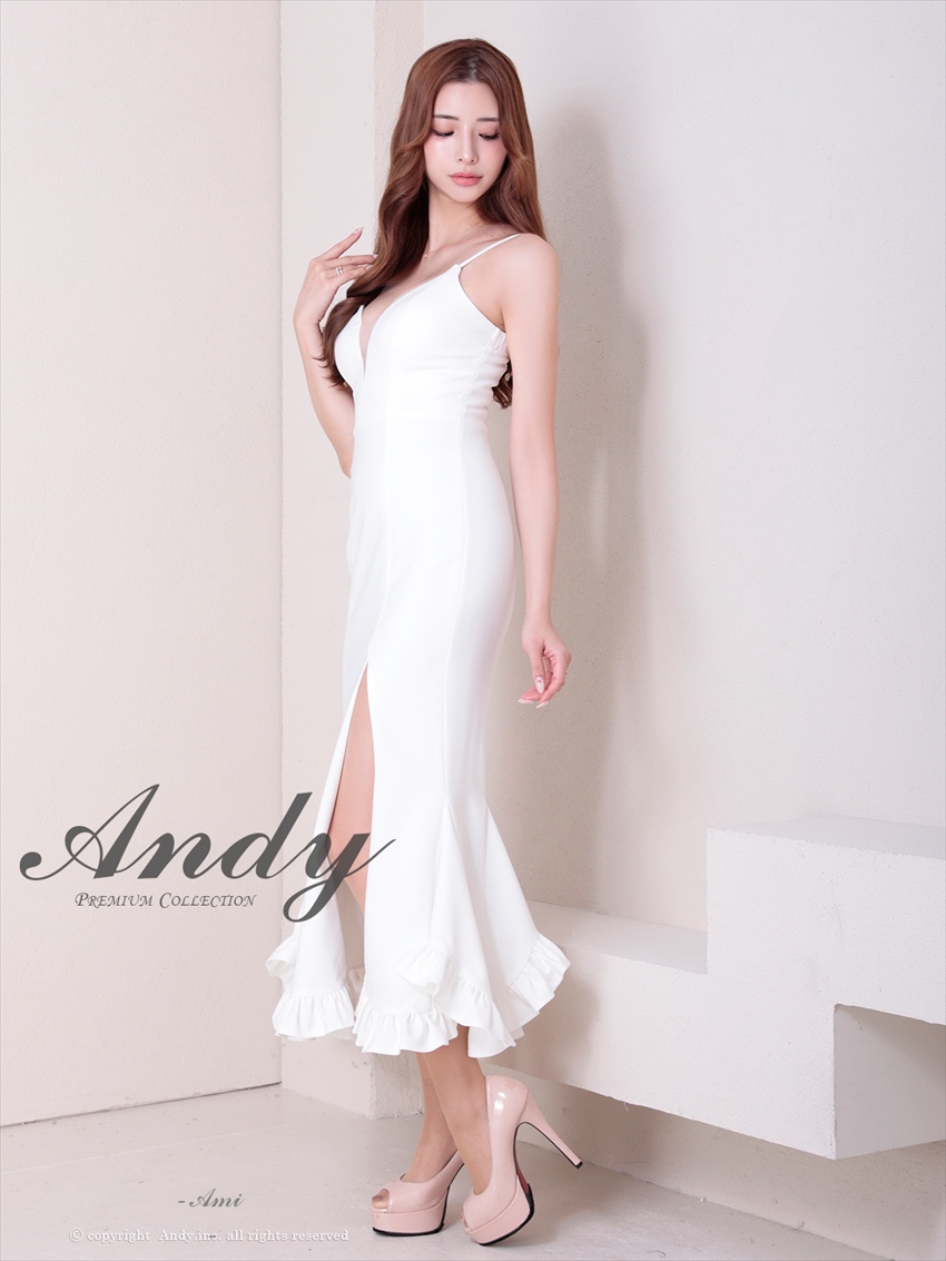 [Andy/an][Andy]シンプル・ワンカラー・バストシアー・キャミソール・裾フリル・スリット・マーメイド・ミディアムドレス《送料&代引き手数料無料》 [an-on2959]