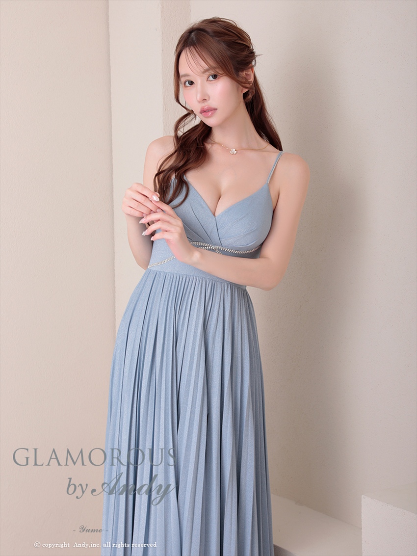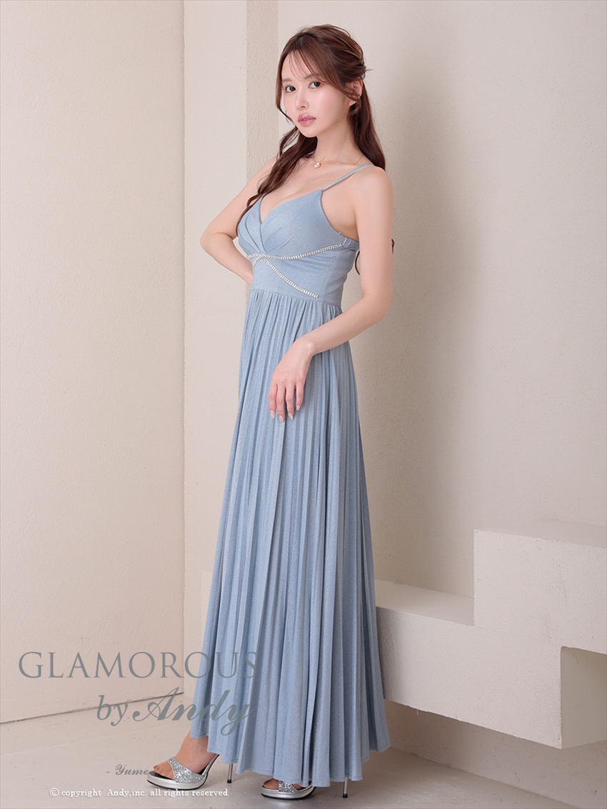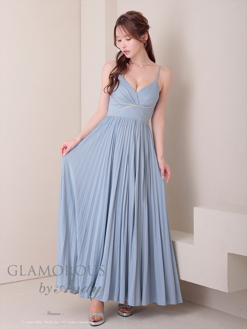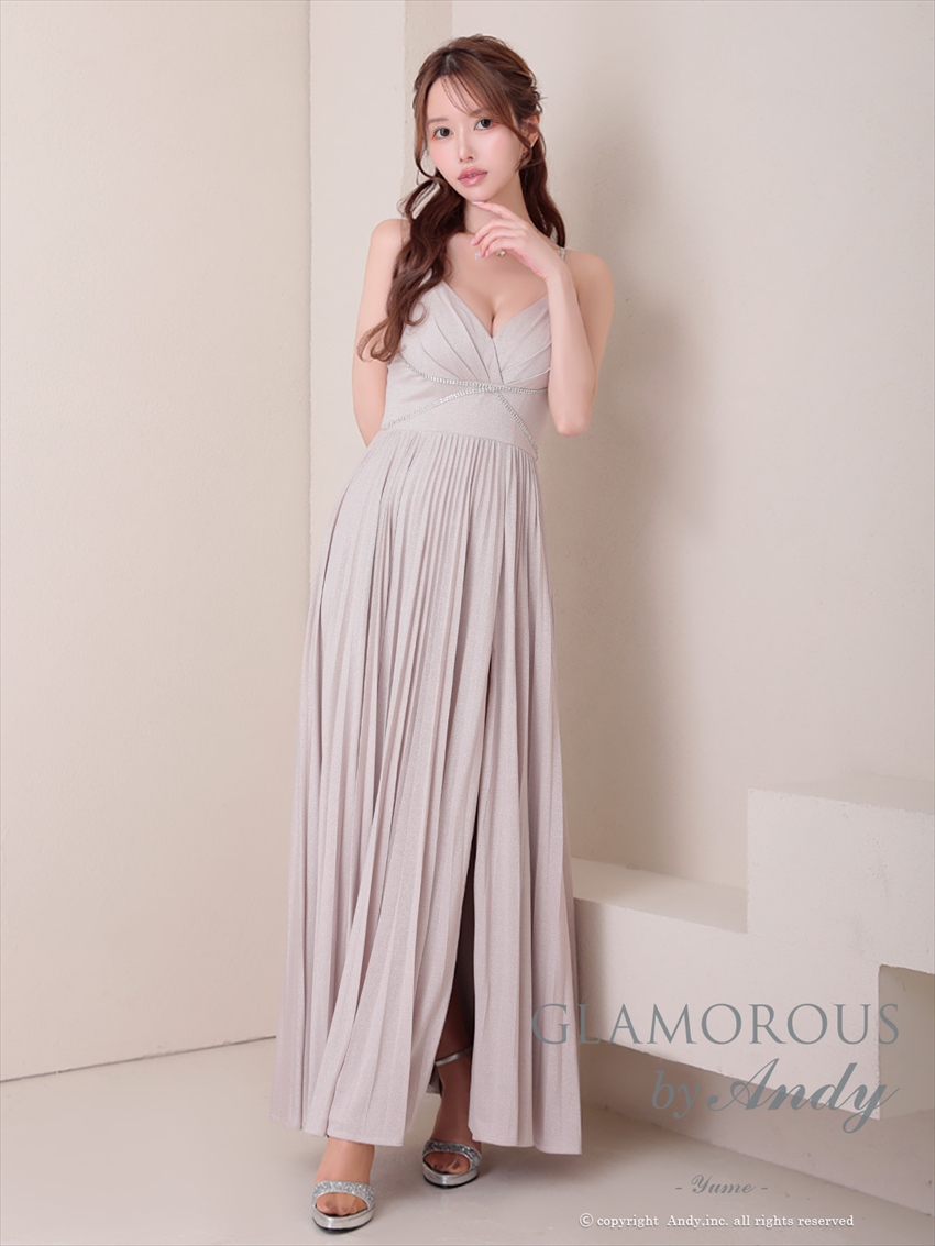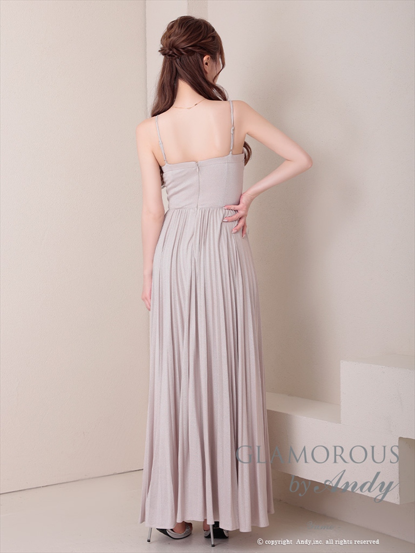 [Andy/an][Andy]ビジュー・ラメ・プリーツ・キャミソール・スリット・ストレッチ・フレア・ロングドレス・キャバドレス《送料&代引き手数料無料》 [an-gms-v870]