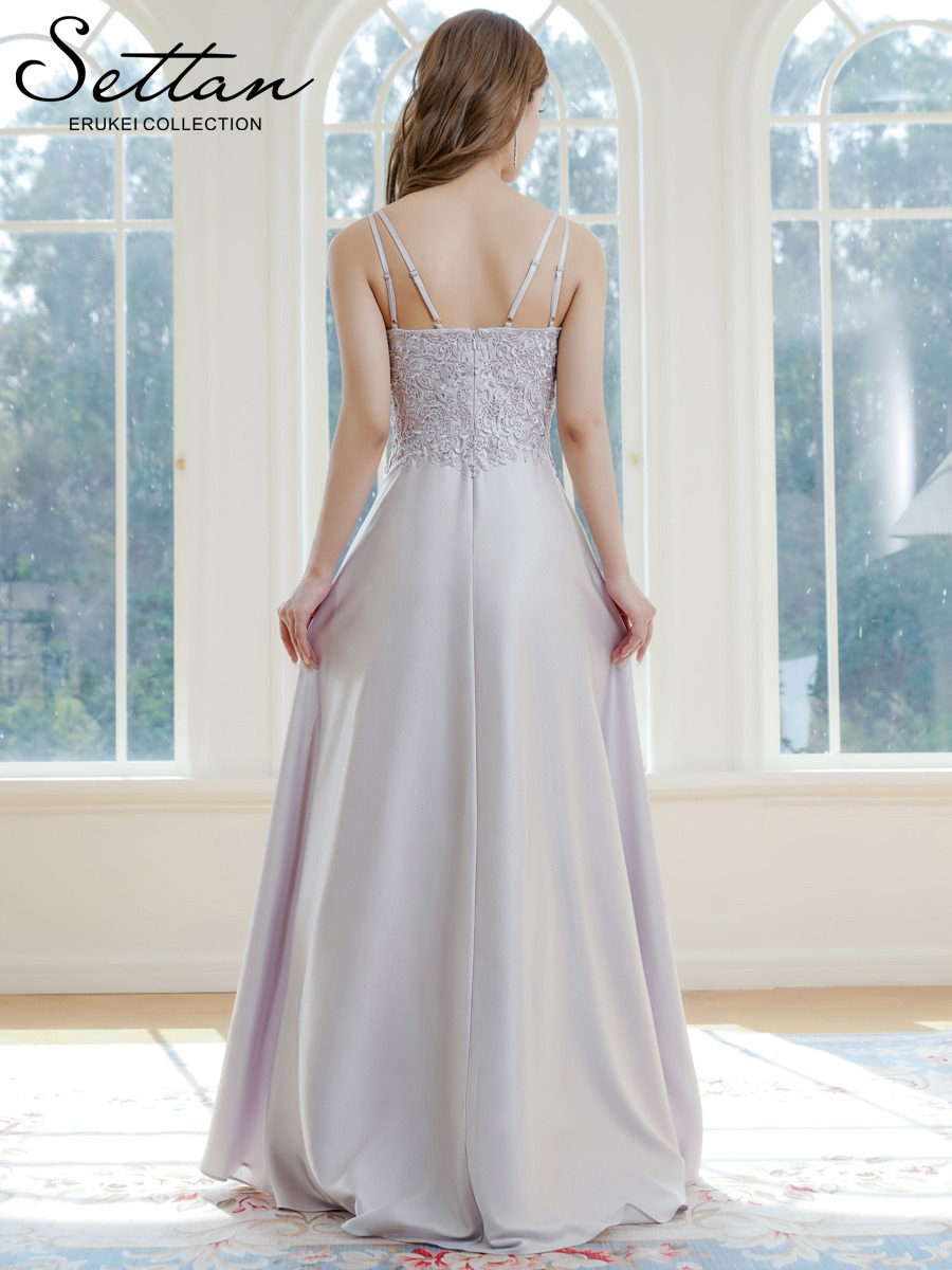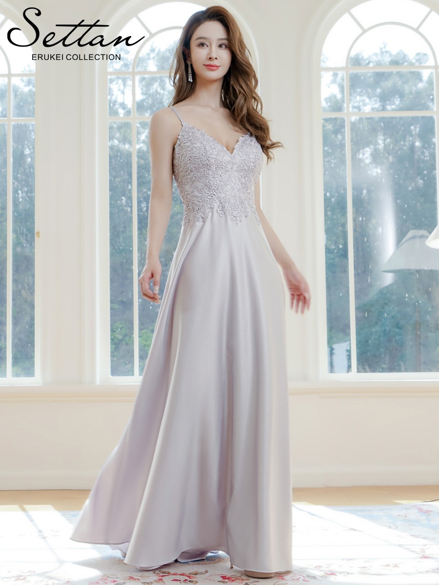 [ERUKEI]シルバー・キャミソール・ラインストーン・刺?・レース・エレガント・Aライン・ロングドレス[送料無料] [lk-s37113]